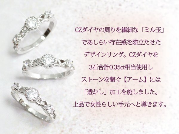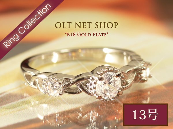 13号 / 新品 指輪 K18GP ミル打ち 透かし リング レディース シルバー 18金 ホワイトゴールド ダイヤ CZ シンプル おしゃれ プレゼント 女