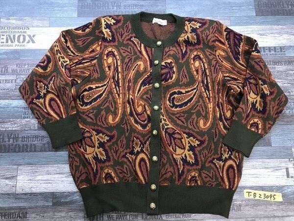 LunDun レディース 毛アクリル ジャガード ニットカーディガン L 茶緑他 です。