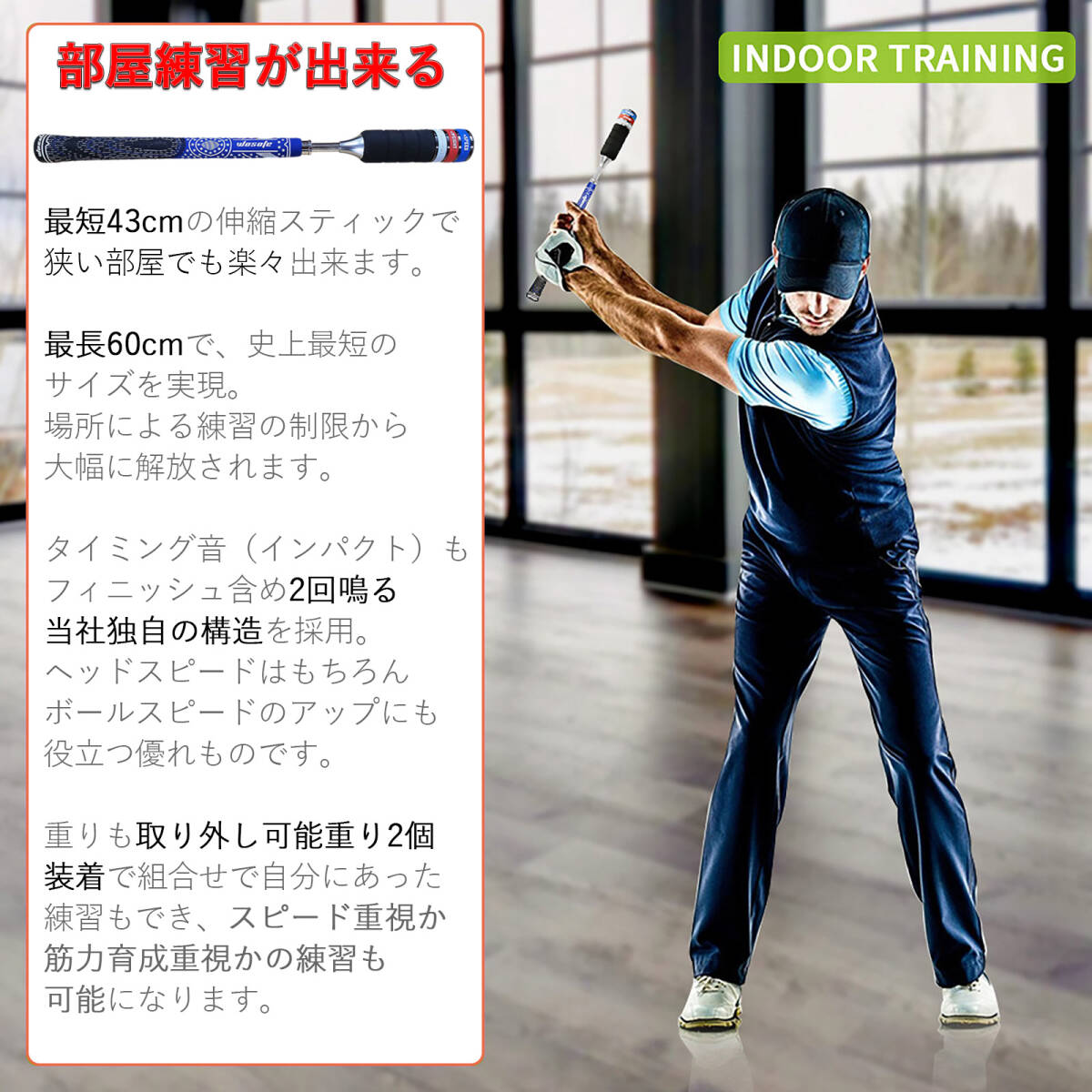 【いつでもどこでもスイング練習】伸縮型のゴルフスイングで、小さくて持ち運びに便利で、いつでもどこでも身につけて、いつでもどこでも出してスイングトレーニングをすることができます。