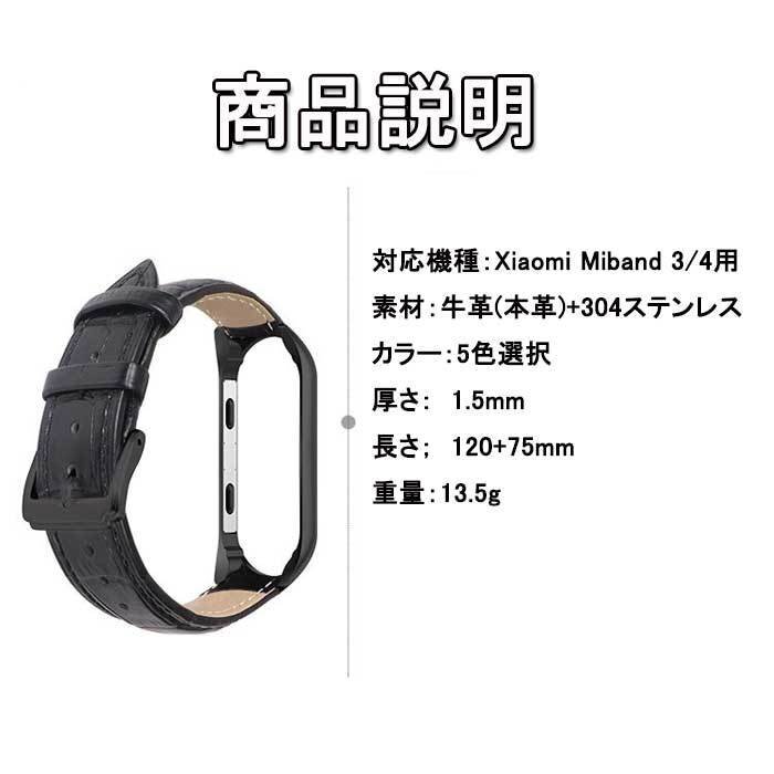 XIAOMI mi band 3/4 対応 バンド 交換ベルト 本革 高品質 柔らかい レザー xiaomi mi band 3/4 交換バンド☆5色選択/1点