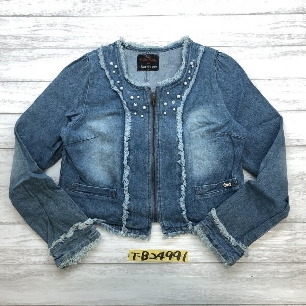 HELLO KITTY ハローキティ × Sorridere ソリデル レディース ビジュー フリンジ デニムジャケット L 青 です。