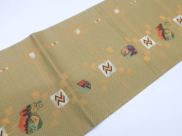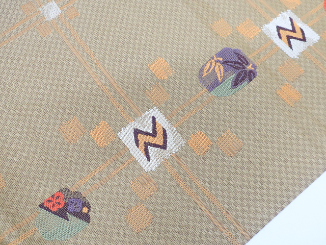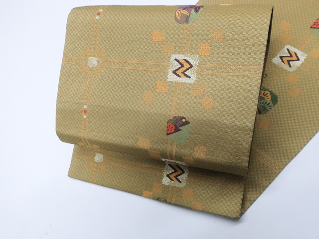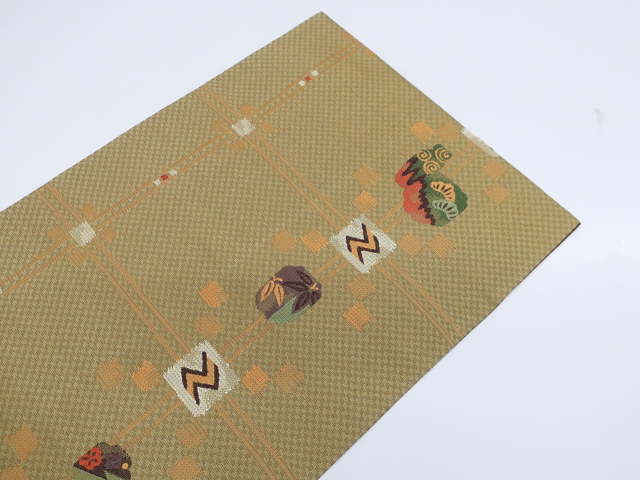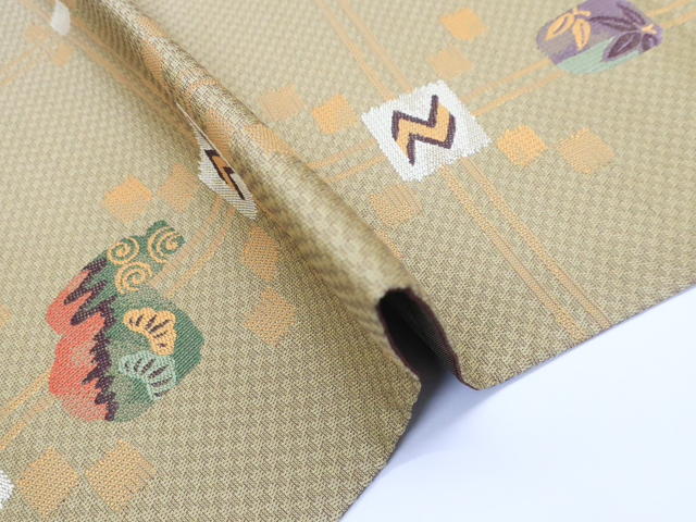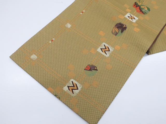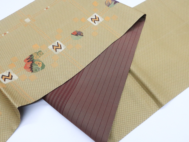 リサイクル商品の為、折れ山跡がございますがご着用いただけると存じます。 地色は黄土です。 1枚目の画像が近いお色かと思われます。 素材は正絹です。 |