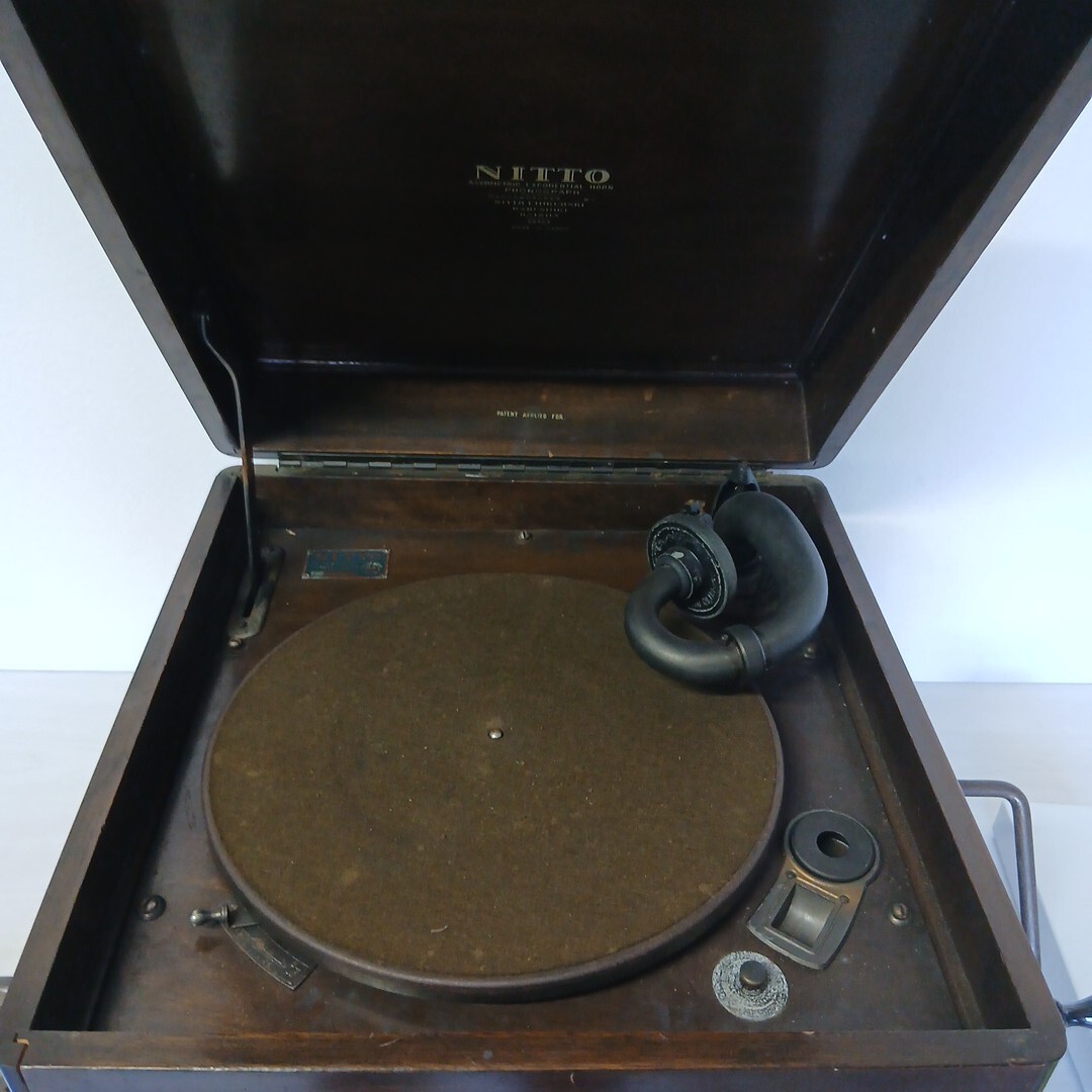 大阪の老舗メーカー「日東蓄音器株式会社」による手回し式蓄音機、ジャンク出品です。