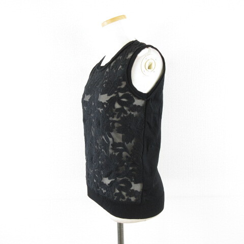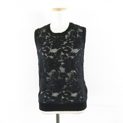 ソブ sov. ダブスタ ノースリーブニット 刺繍 黒 38 *A133 レディース