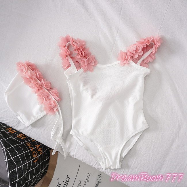 【120cm】フラワーフリル セパレート 水着 ホワイト 子供服 女の子 韓国子供服 ビーチ 海 プール K-203