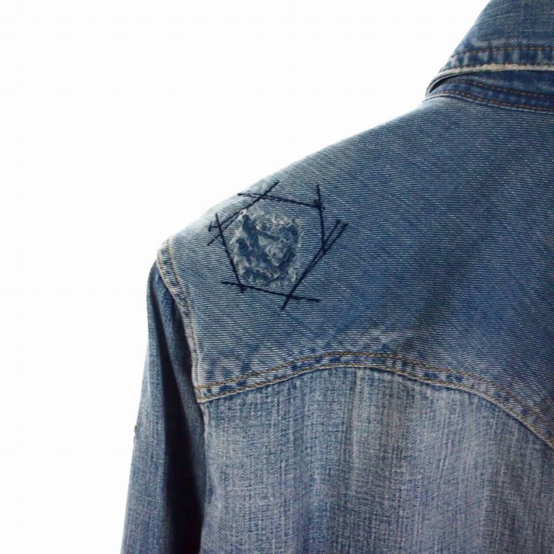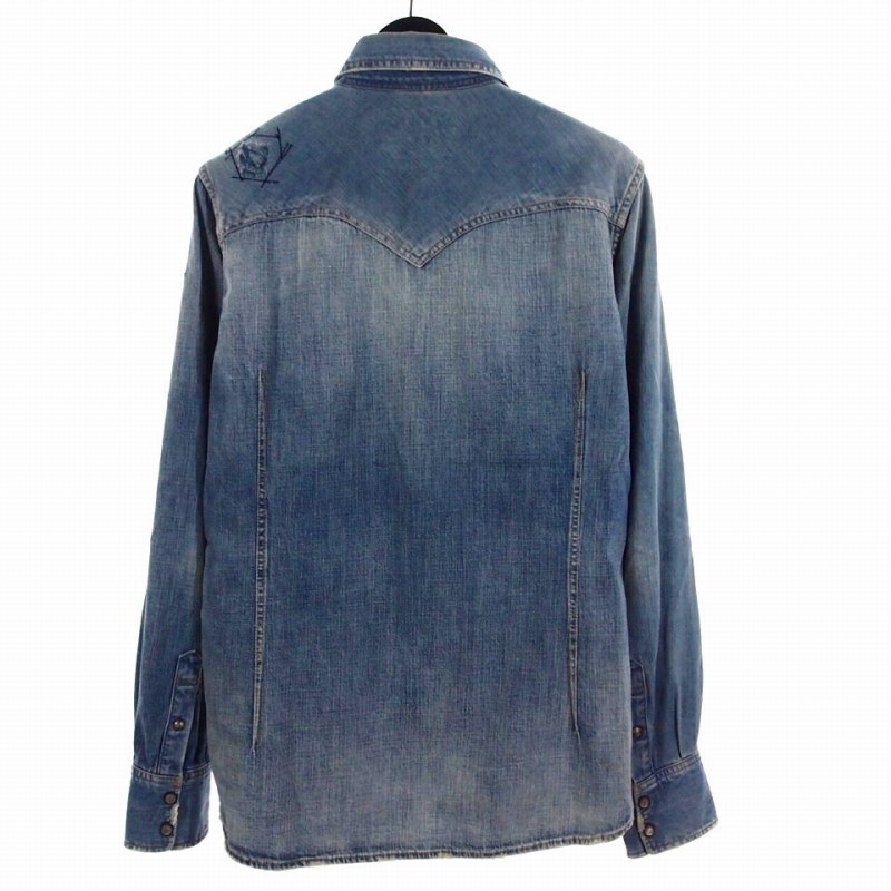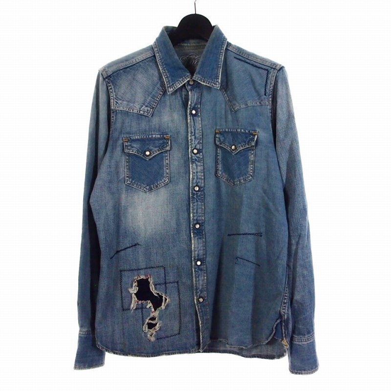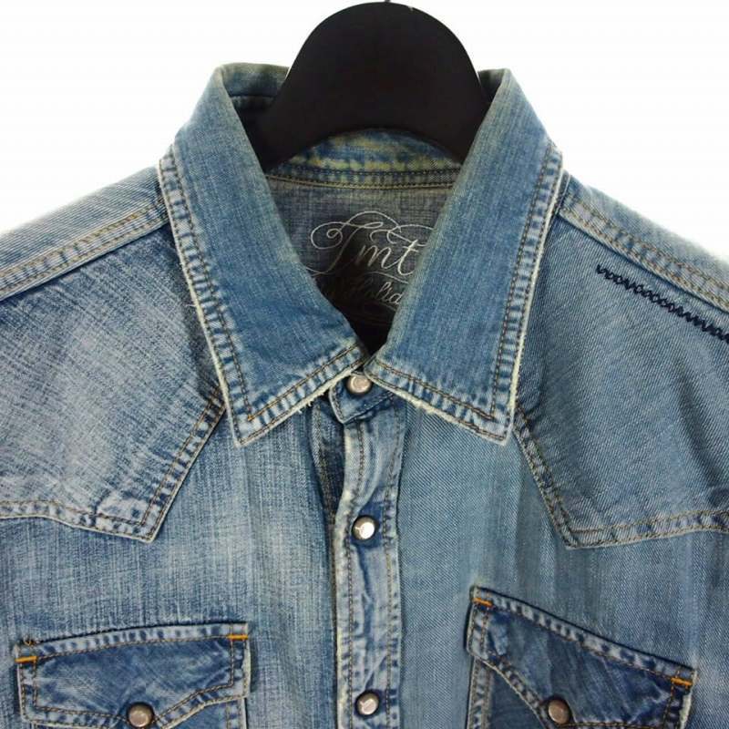 ティーエムティー TMT L/SL CRAZY CRUSH DENIM SHIRT ダメージ加工 デニムシャツ 長袖 L ブルー 青 TSH-F1404 メンズ