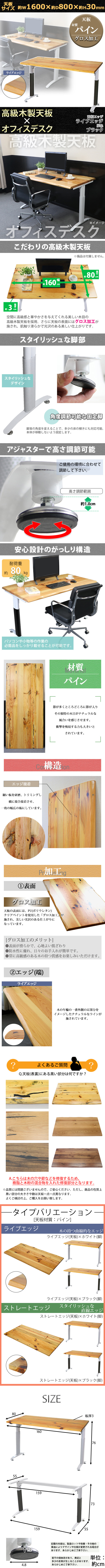 | 商品名 | 送料無料 オフィスデスク デスク 約W160×約D80×約H76 約W1600×約D800×約H760 パイン材 高級 木製 天板 グロス加工 耐荷重約80kg(脚部) 平机 ワークデスク 事務机 パソコンデスク PCデスク 事務デスク オフィステーブル オフィス家具 会社 事務所 会議用 ライブエッジ 脚色 ブラック t016160pineg |
