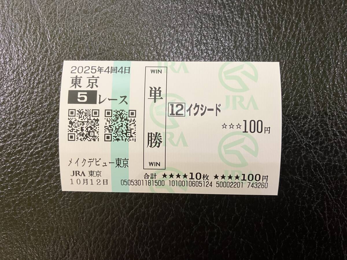 2025年度メイクデビュー東京(10/12)現地単勝馬券イクシード(的中)②