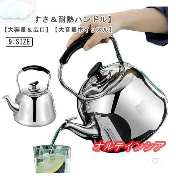 笛吹きケトル ステンレス 10L やかん 頑丈 防錆性 大容量 ガス火/IH対応 均一加熱 絶縁ハンド