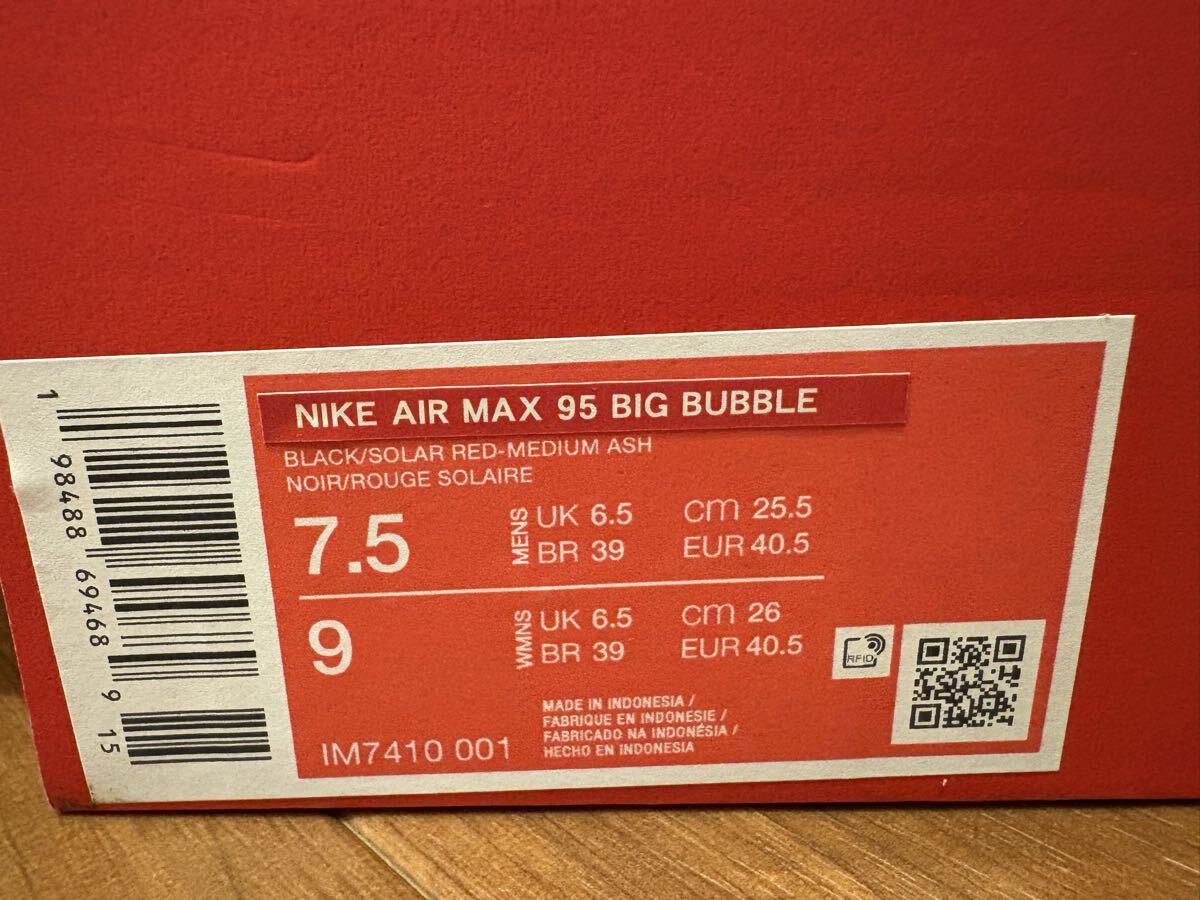 25.5cm Nike Air Max 95 OG Big Bubble Medium Ash/Solar Red ナイキ エアマックス95 ビッグバブル レッド 新品未使用 国内正規品