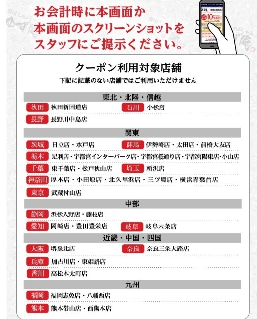 ゆず庵でご利用頂ける最新の10%割引のクーポンです。