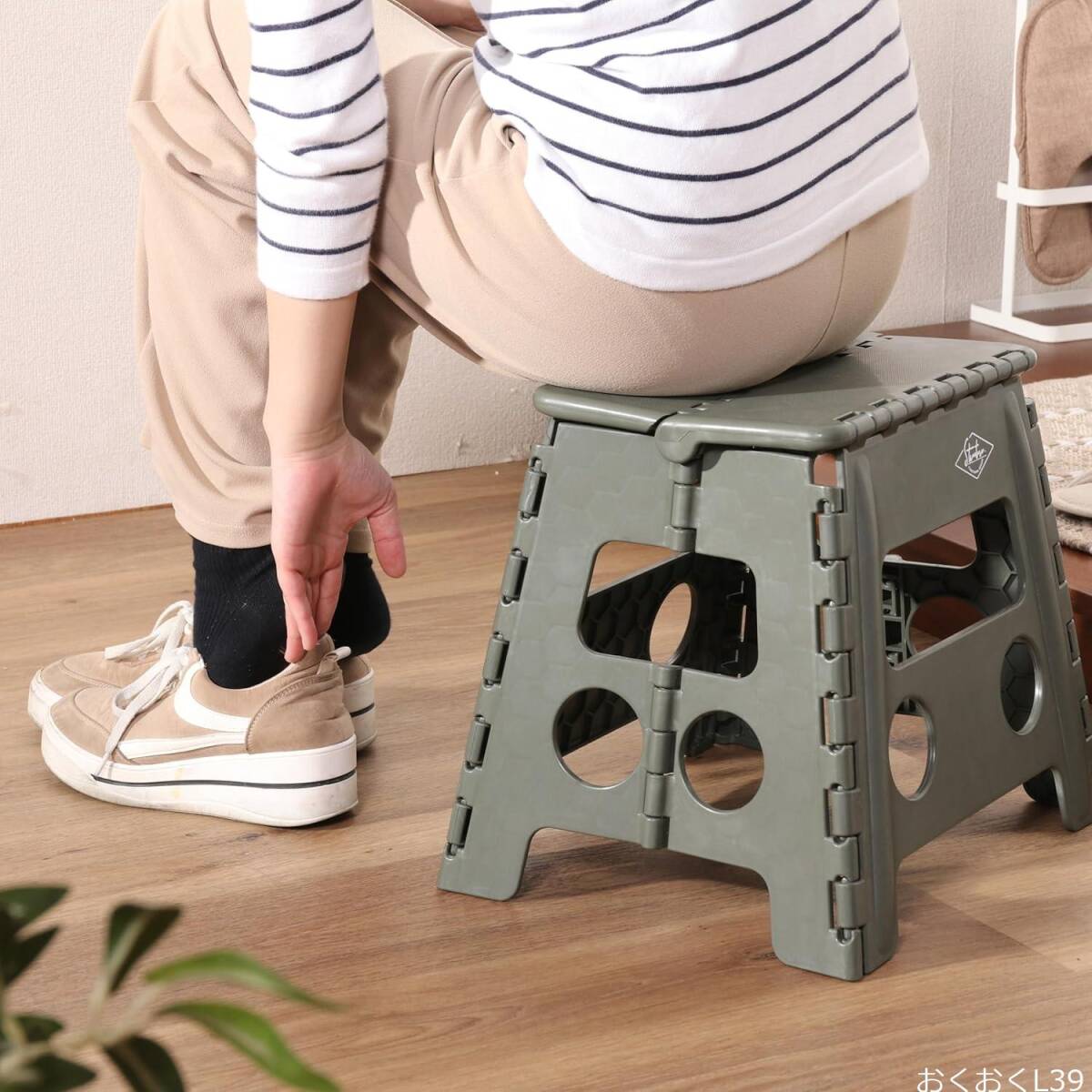 不二貿易 折りたたみ椅子 踏み台 ステップ 幅37×奥行30×高さ32cm カーキ アウトドア コンパクト スツール 耐荷重150