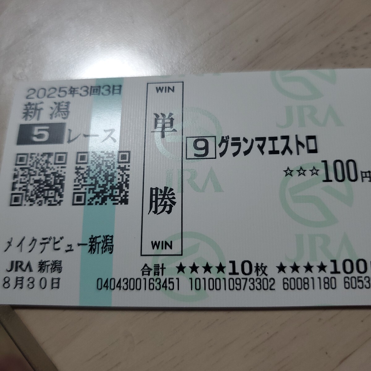 現地で買いましたメイクデビュー新潟グランマエストロです。