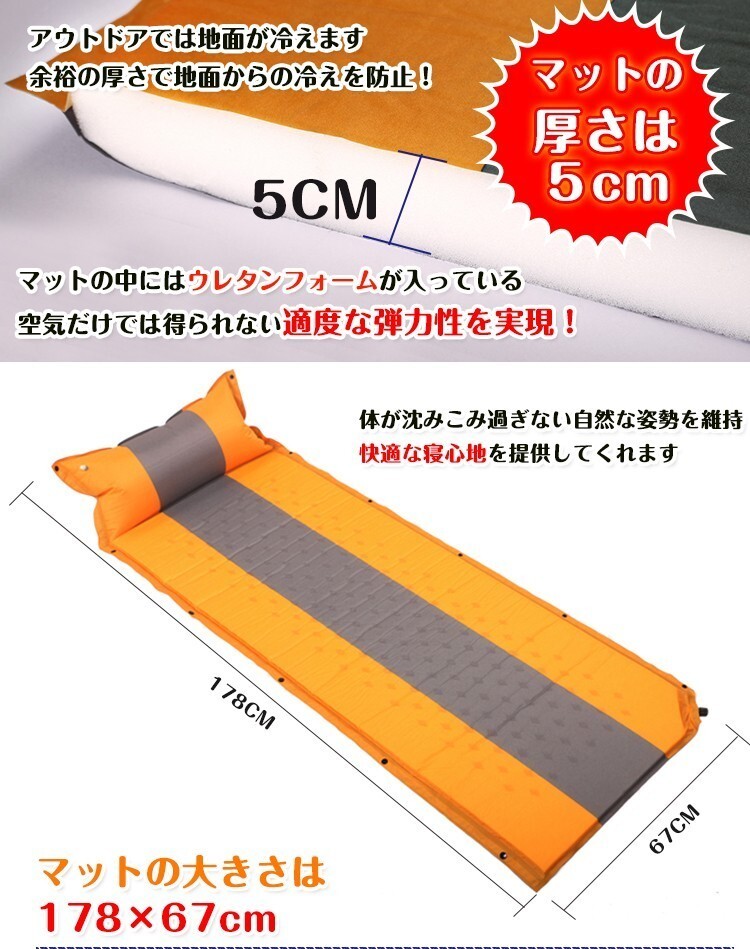 送料無料 テントマット インフレータブル キャンピングマット 軽量 エアーマット エアマット エアーマットレス レジャー 5cm ad077