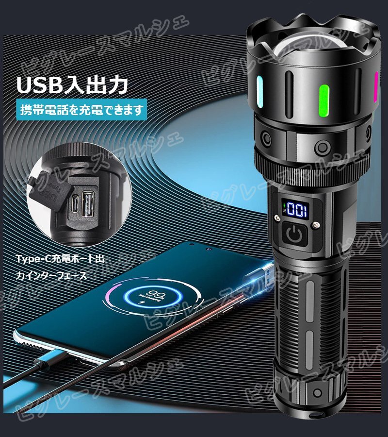 LED懐中電灯 強力 超高輝度 フラッシュライト 充電式 懐中電灯 led 強力 軍用 5000mah hw1118