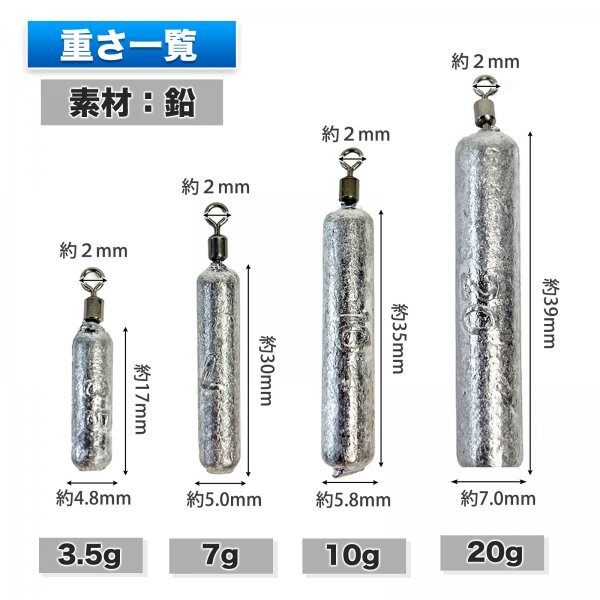 【多様な釣りスタイルに対応】3.5gから20gまでの幅広い重量オプションにより、様々な釣り場や状況に対応可能です。これにより、淡水から海水まで、あらゆる環境で最適な釣り体験を提供します。