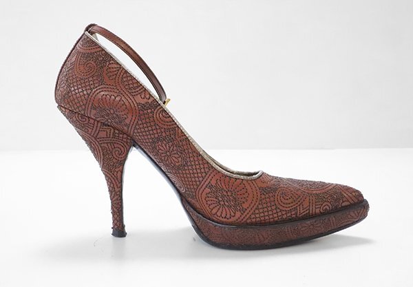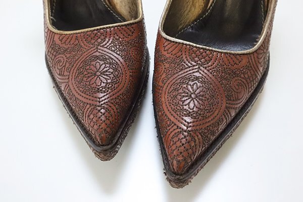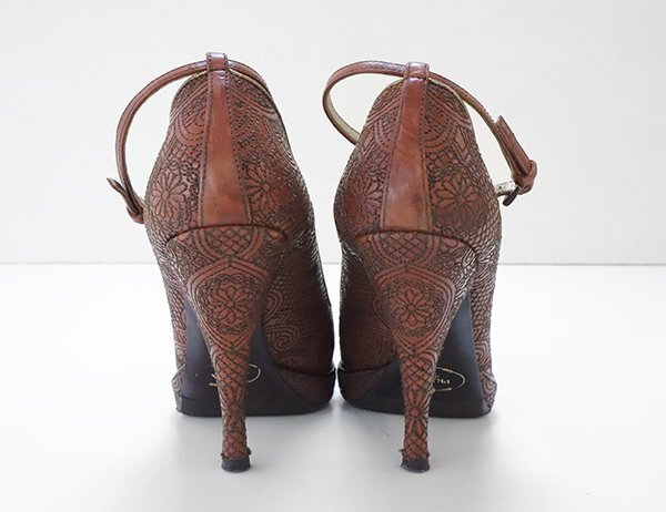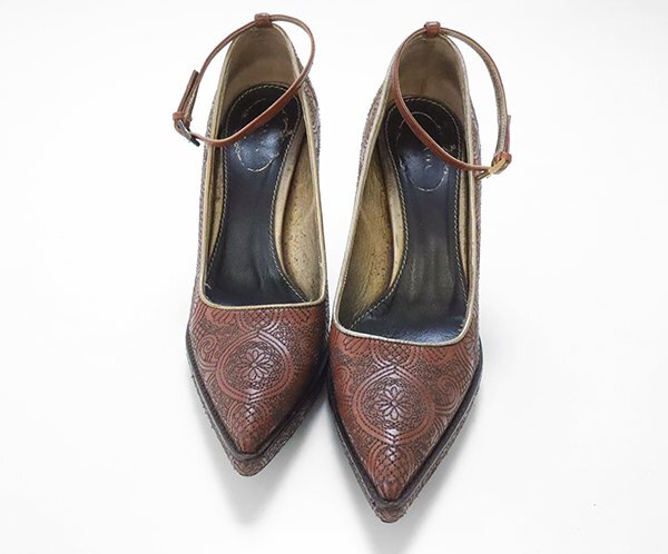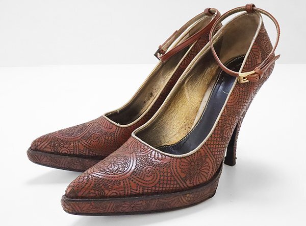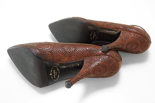 PRADA ◆ 刺繍 レザー ストラップ ハイヒール パンプス 36.5サイズ (約23.5cm) ブラウン ヒール11cm プラダ ◆G104