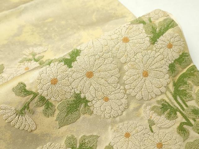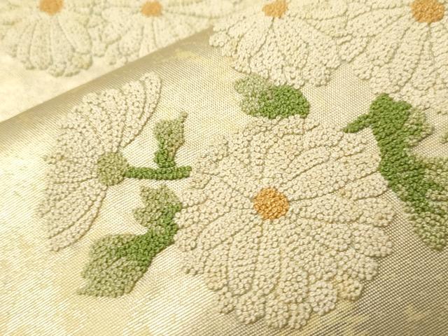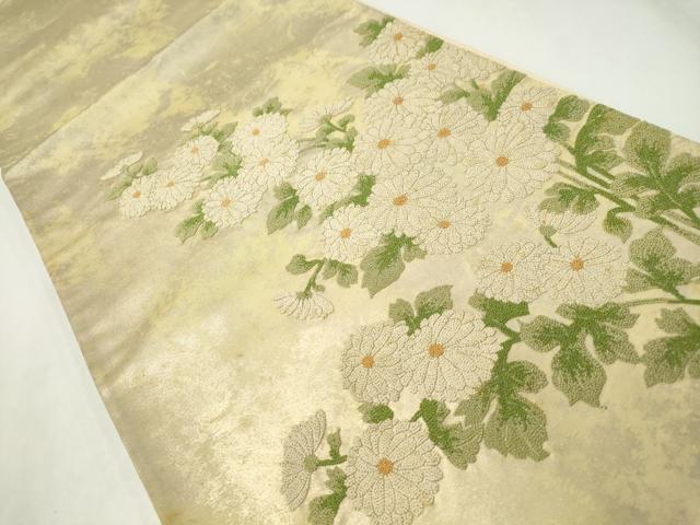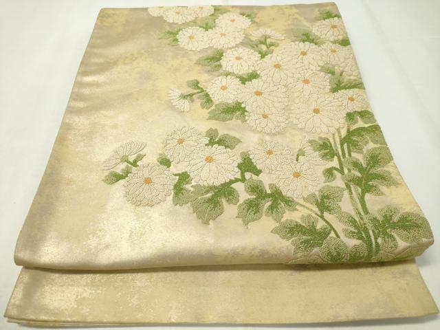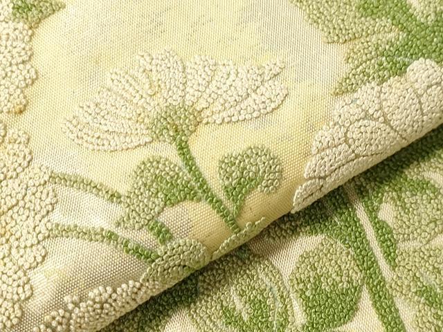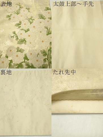 | 【正絹・芯なし】 状態は接写画像のように表地所々・裏地・たれ先中に薄い汚れ、太鼓上部から手先に 折山の線汚れがございます。 大変上質な逸品になりますのでぜひお手入れをされてお召しになられてはいかがでしょうか。 お安く出品致しますので、是非この機会にいかがでしょうか?