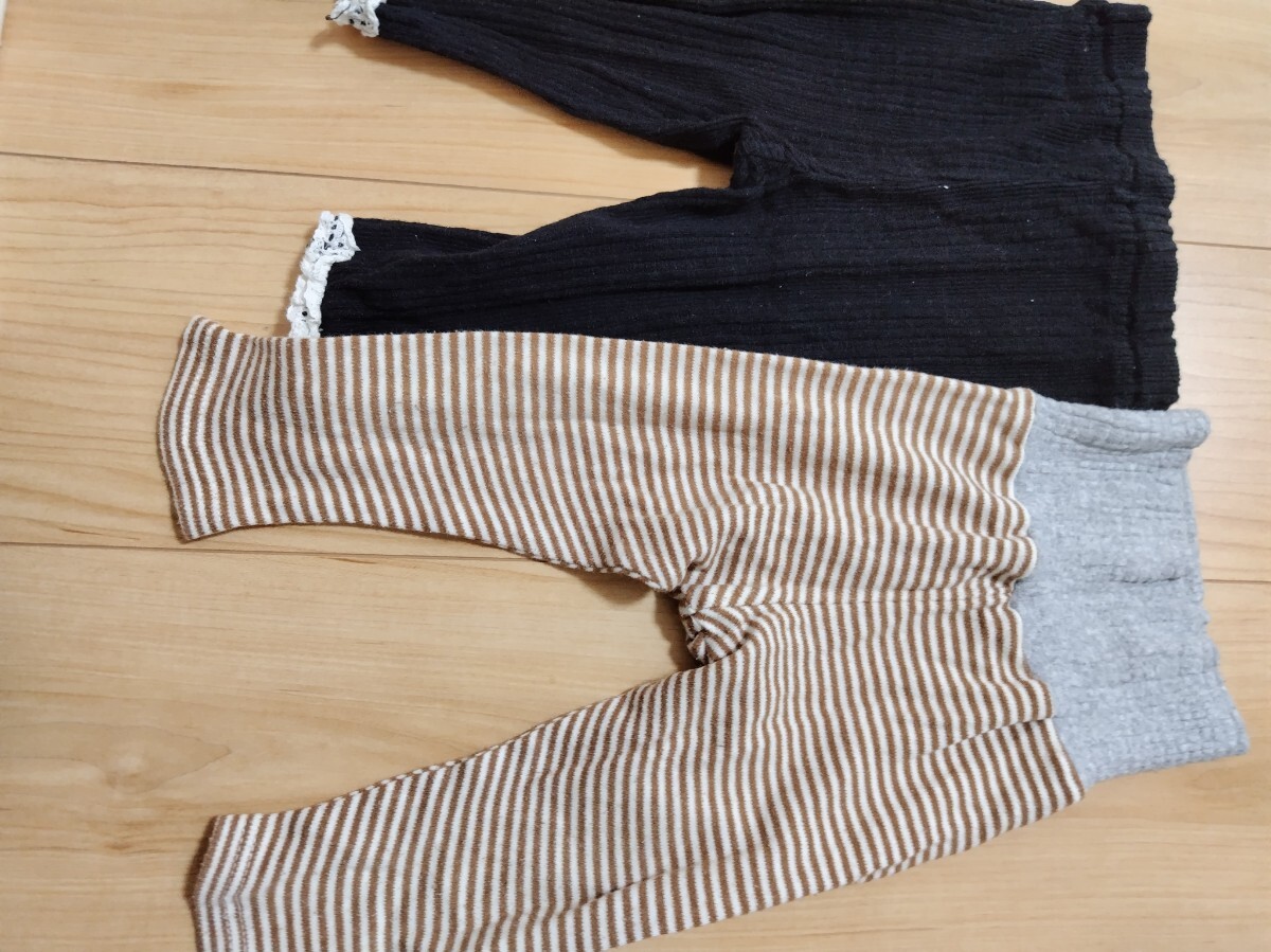 2.白 茶系 ボーダー レギンス 80サイズ 記名なし アカチャンホンポ購入