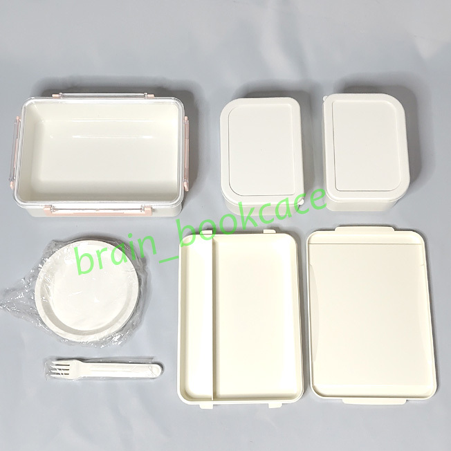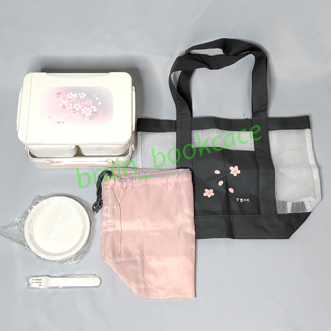 ・ボックス(浅い)/サイズ:約235×170×35mm ・ボックス(深い)/サイズ:約235×170×65mm ・タッパー×2/サイズ:約165×117×65mm ・プレート×4/サイズ:約145×145mm ・フォーク×4 ・袋 ・バッグ |