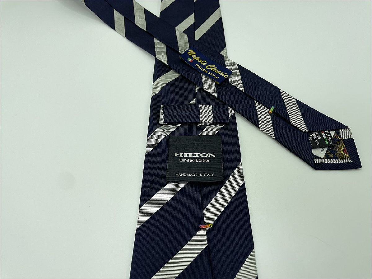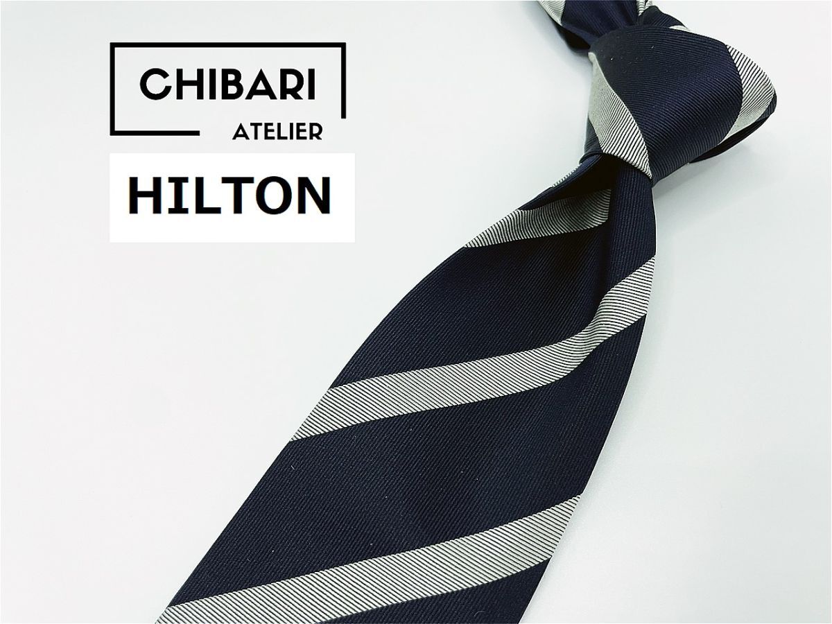 【超美品】HILTON ヒルトン レジメンタル柄 ネクタイ 3本以上 送料無料 メンズ ネイビー 0902236