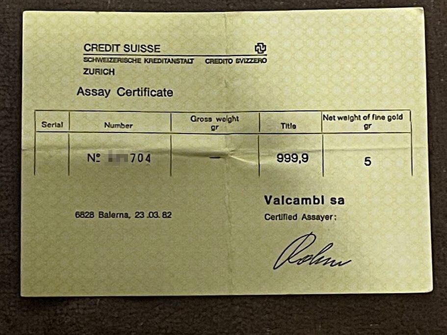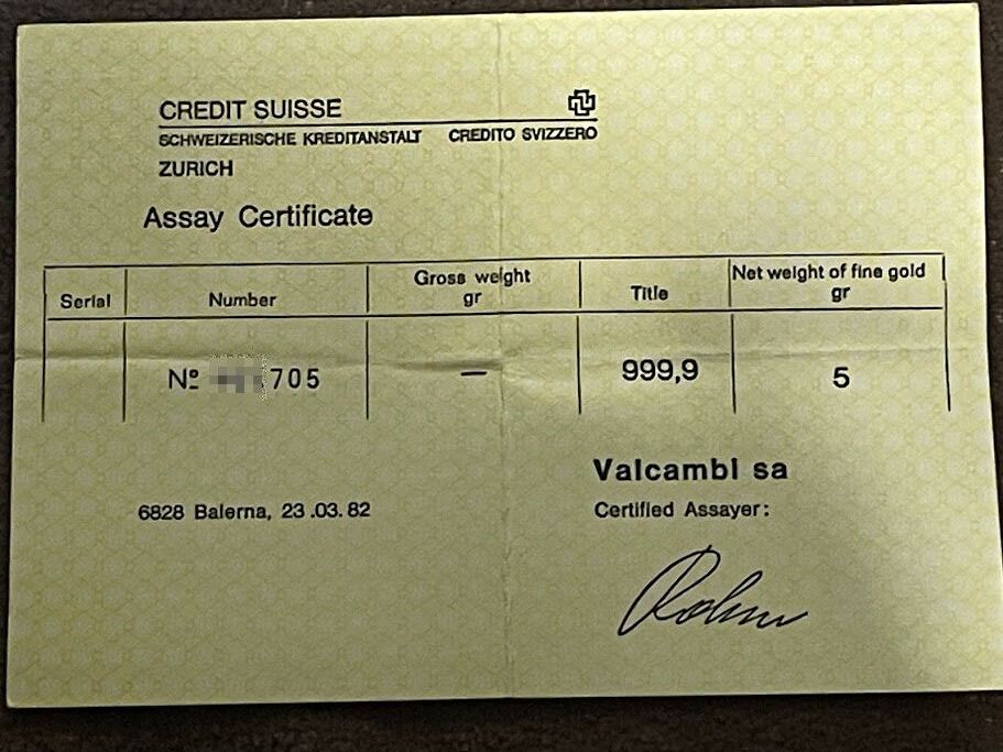 CREDIT SUISSEの証明書(マテリアルナンバー付き)になります。