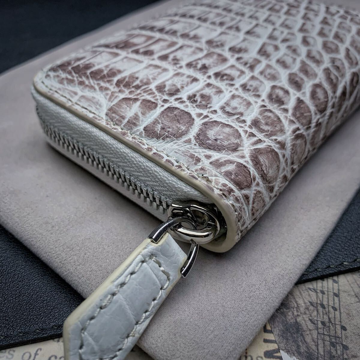 ・クロコダイルと呼ばれている品種のワニ革は人気が高く、独特の模様と凹凸が魅力で、高級ブランド品を中心にクロコダイルが多く使われています。今回はワニ革の代表格である『シャムクロコダイル』のセンターカット背革の小銭入れを出品します。