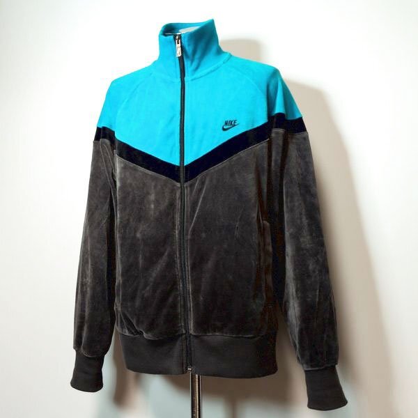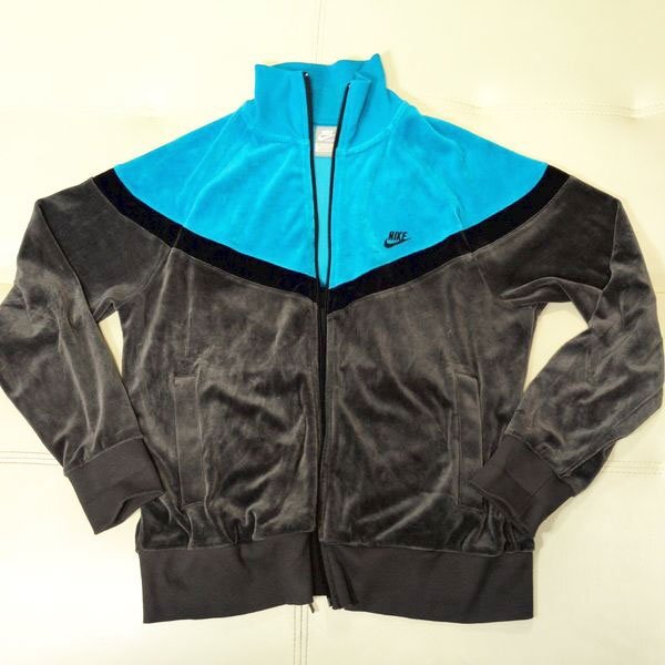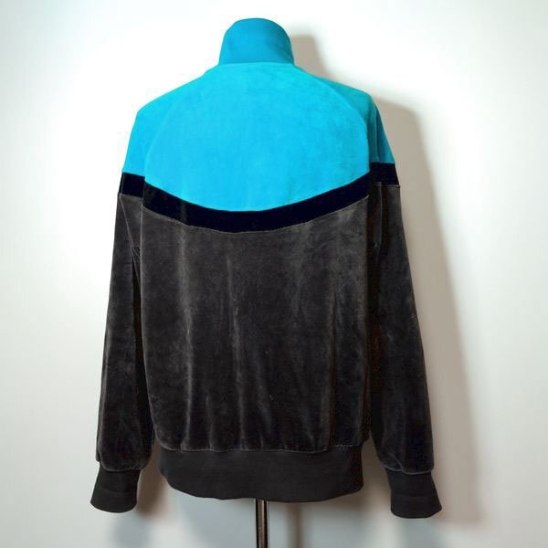 【ナイキ ベロア トラックジャケット XXL(実寸メンズL位か) ジャージ NIKE 451721-060 スカイブルー グレー バイカラー ヴィンテージ】