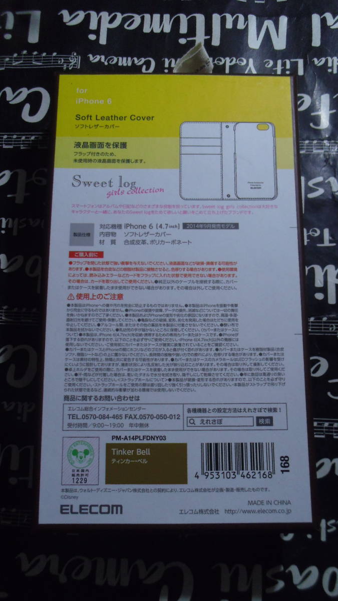 ELECOM iPhone 6 6s ティンカーベル ディズニー公式ライセンス品 フラップ付ソフトレザーカバー ストラップホール付 発送条件付クリポ185円
