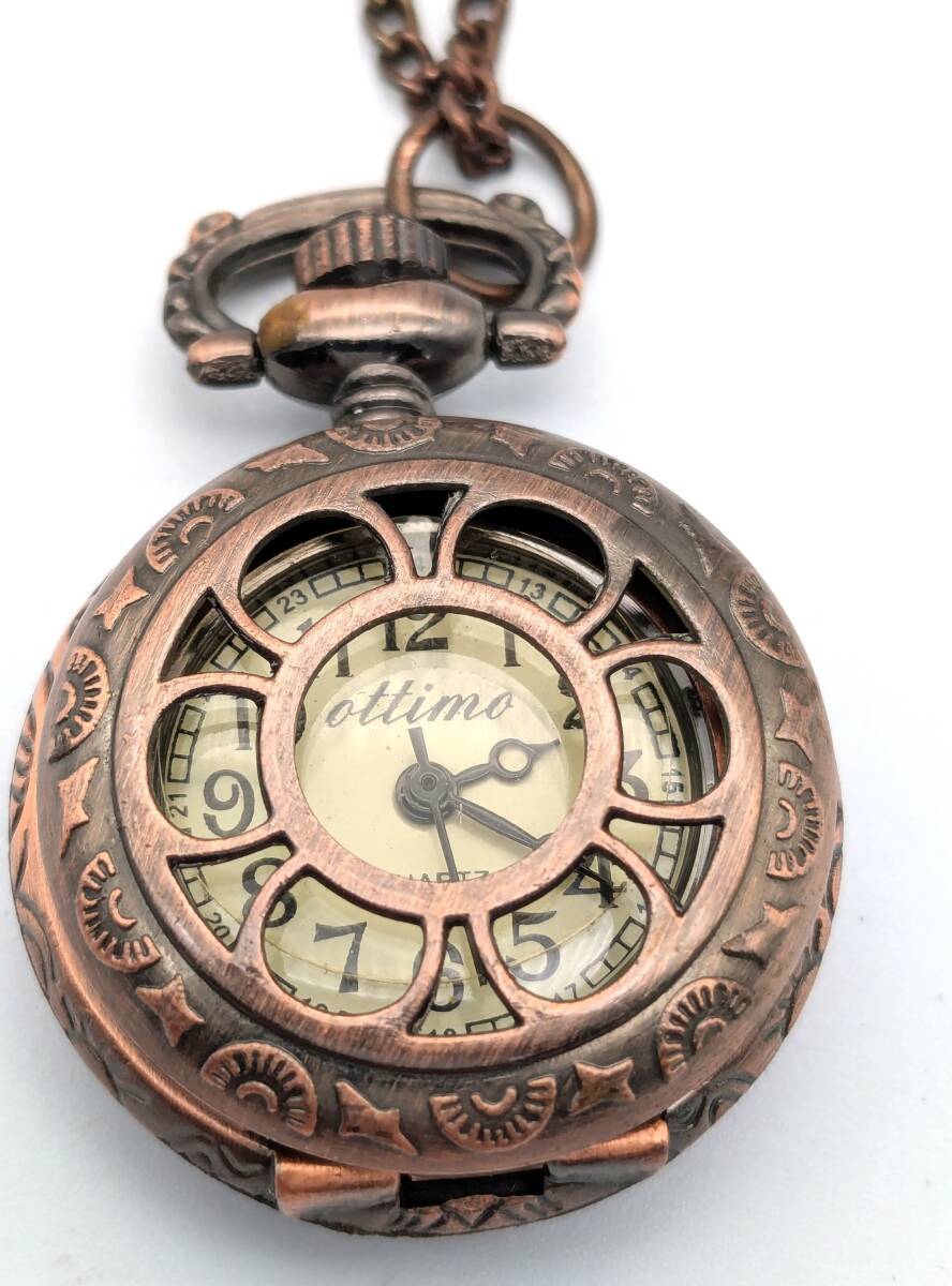 | ■ 懐中時計 OTTIMO クオーツ ottimo ペンダント風 クリスタルカバー開閉 電池切れ動作未確認 【ジャンク】 ■ |