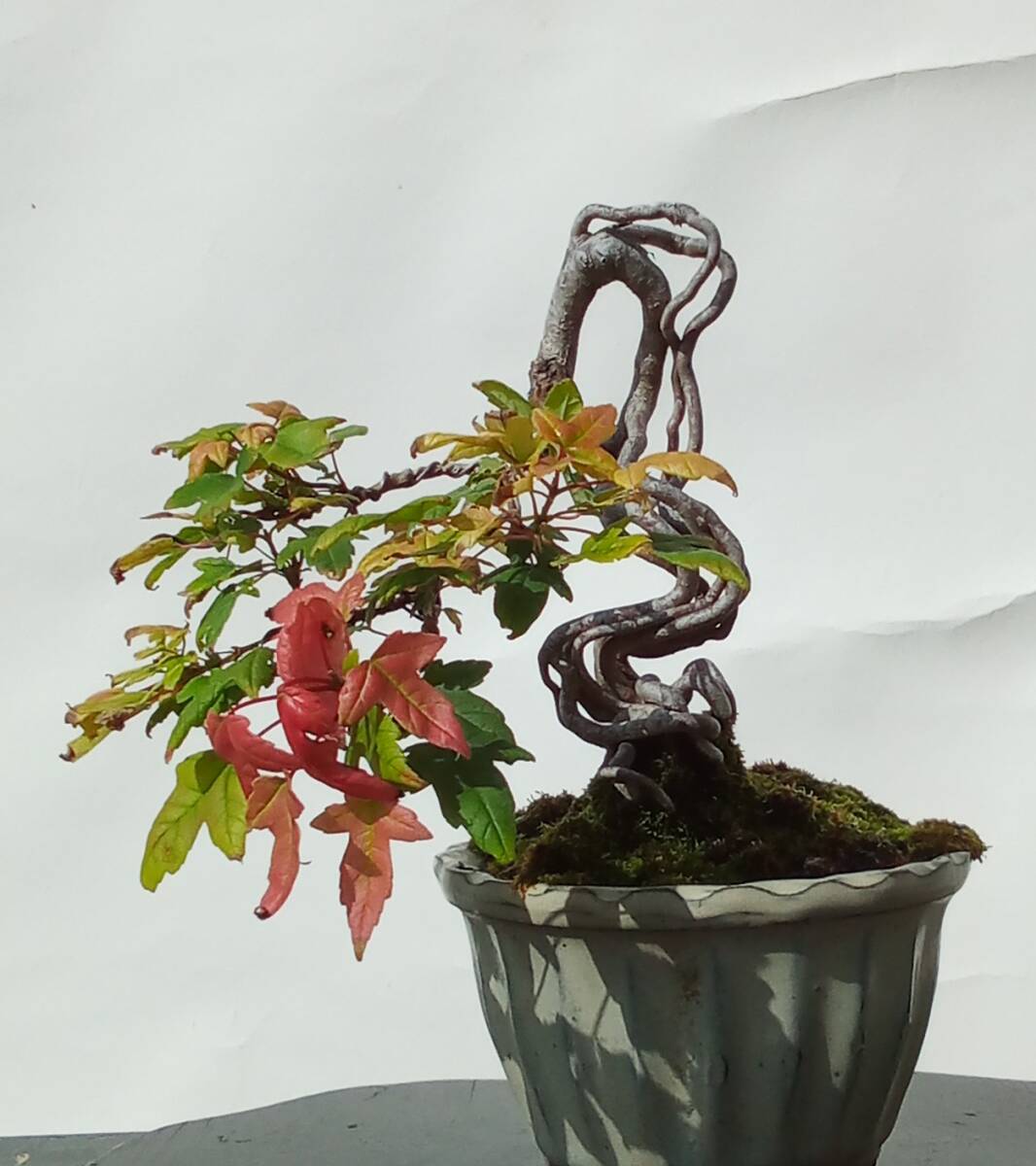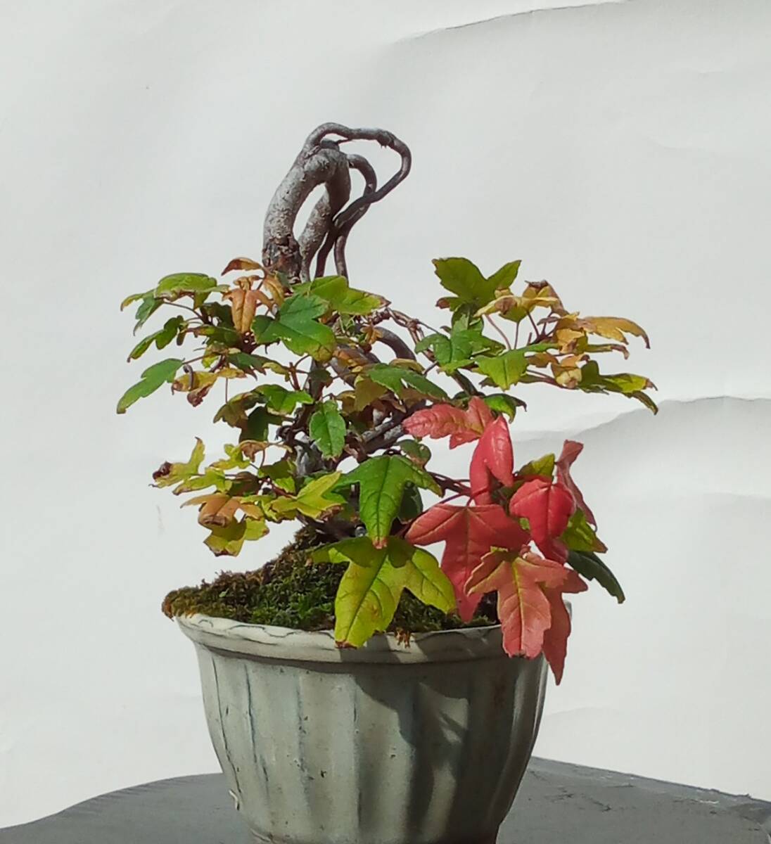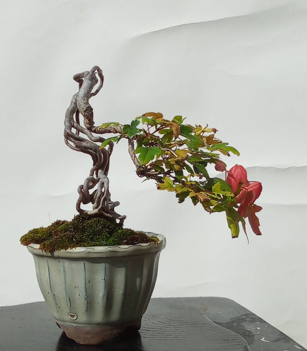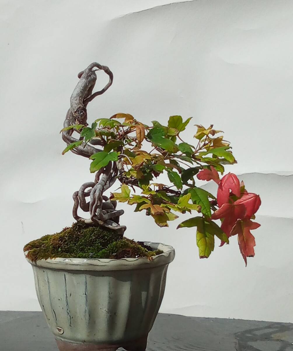 樹高約13㎝  綺麗な根上りの楓の小品盆栽です。