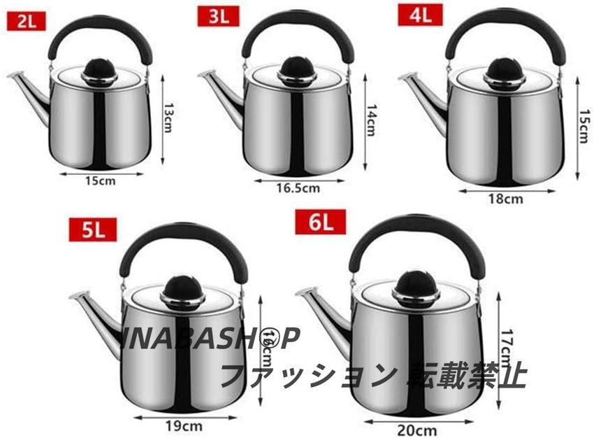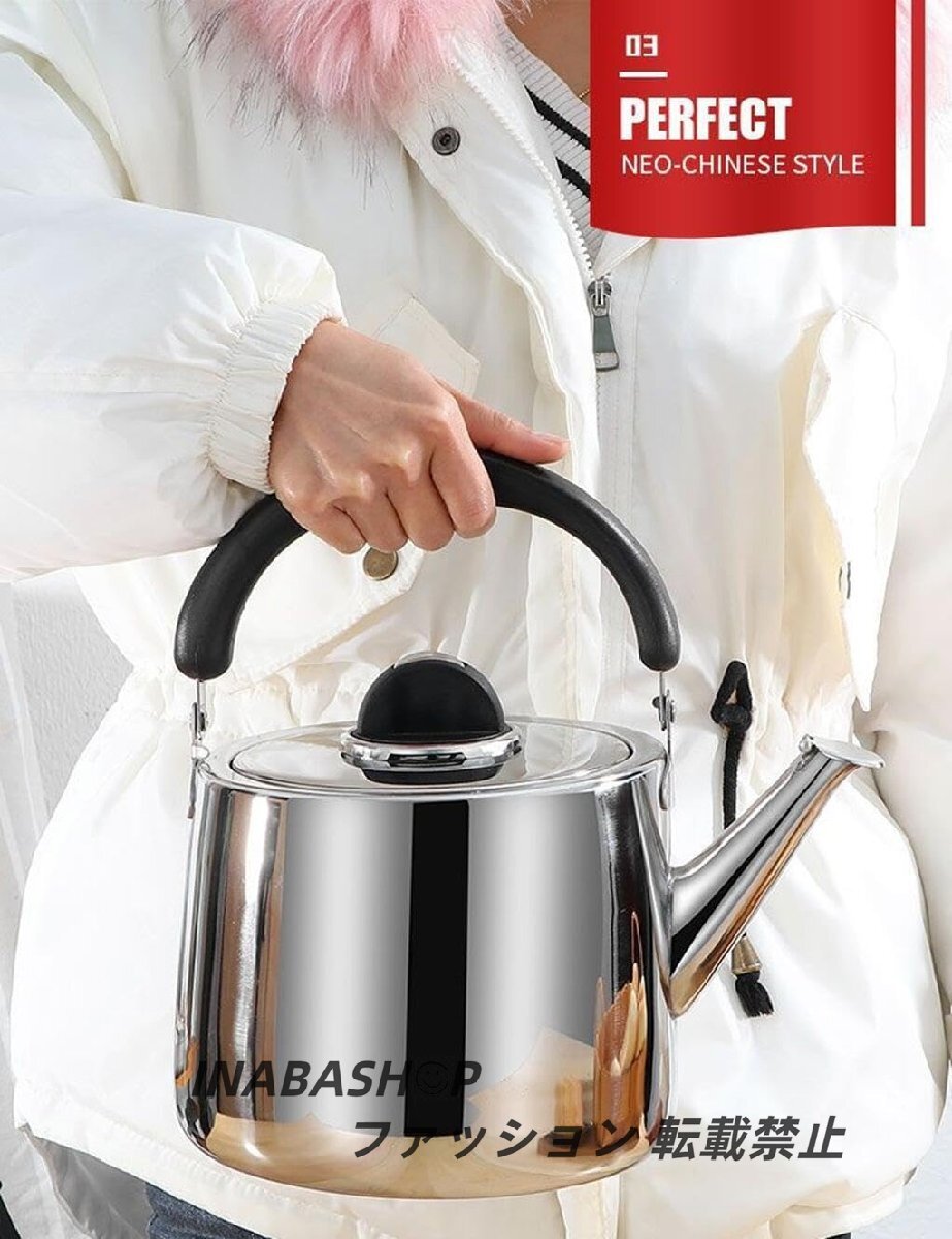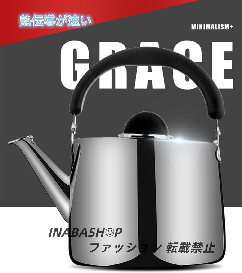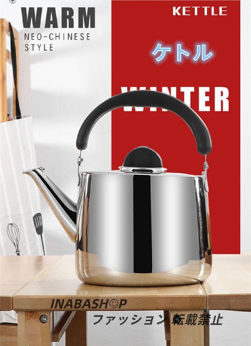 笛吹きケットルやかん ステンレス製ケトル調理器具厚みのあるステンレス鋼のケトル キッチン用品おしゃれ大容量ガス火保温けとる薬缶(4L)