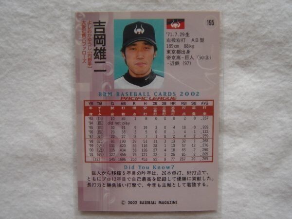 【BBM プロ野球カード 2002】No.195 吉岡雄二 大阪近鉄バファローズ サインパラレル【トレーディングカード トレカ ベースボールマガジン社