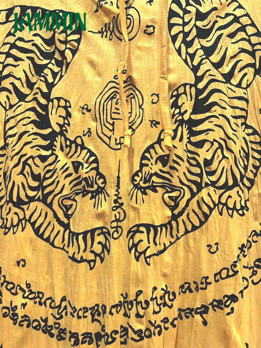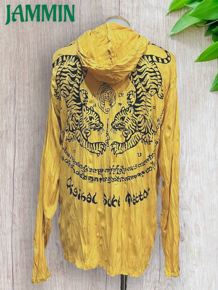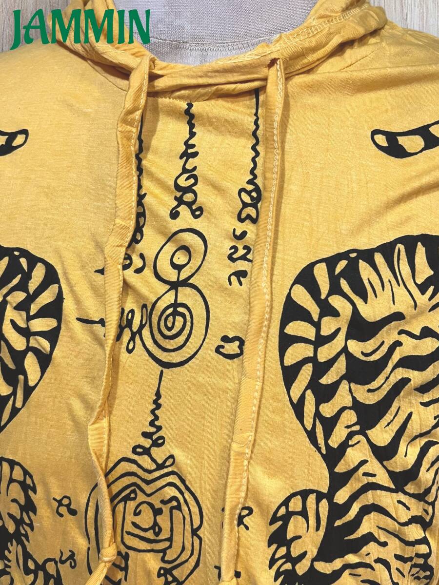 アジアン/エスニック/サイケ/ヒッピー/個性派/ロンT/長袖/Tシャツ/ロングスリーブTシャツ/フード付き/長袖/Lサイズ/虎/タイガー/サクヤン