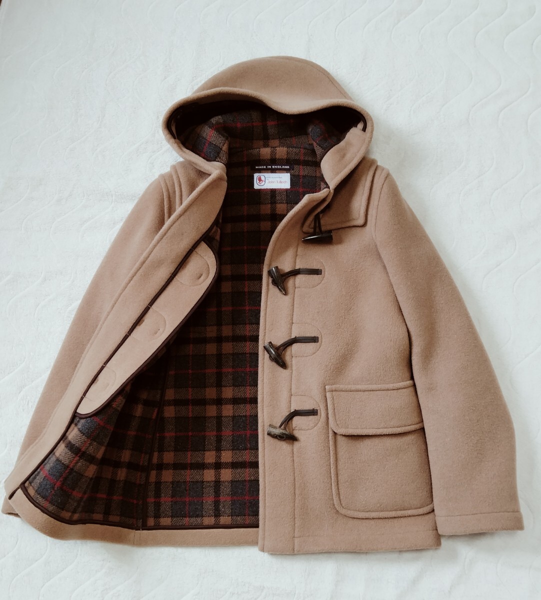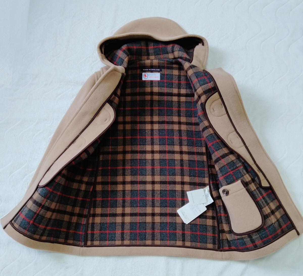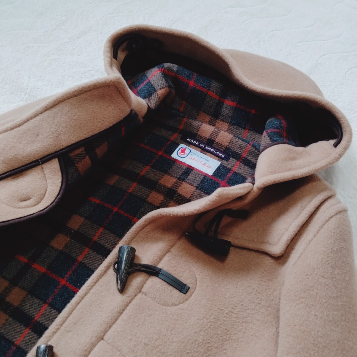 未使用*英国製*JOHN TULLOCH ジョンタロック*ダッフルコート*裏チェック柄*水牛トグル*キャメル*フレームワークス*茶系*ショート丈*36(M)