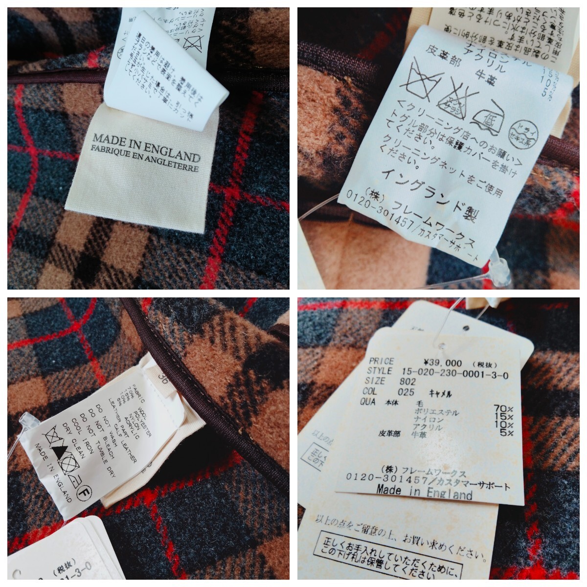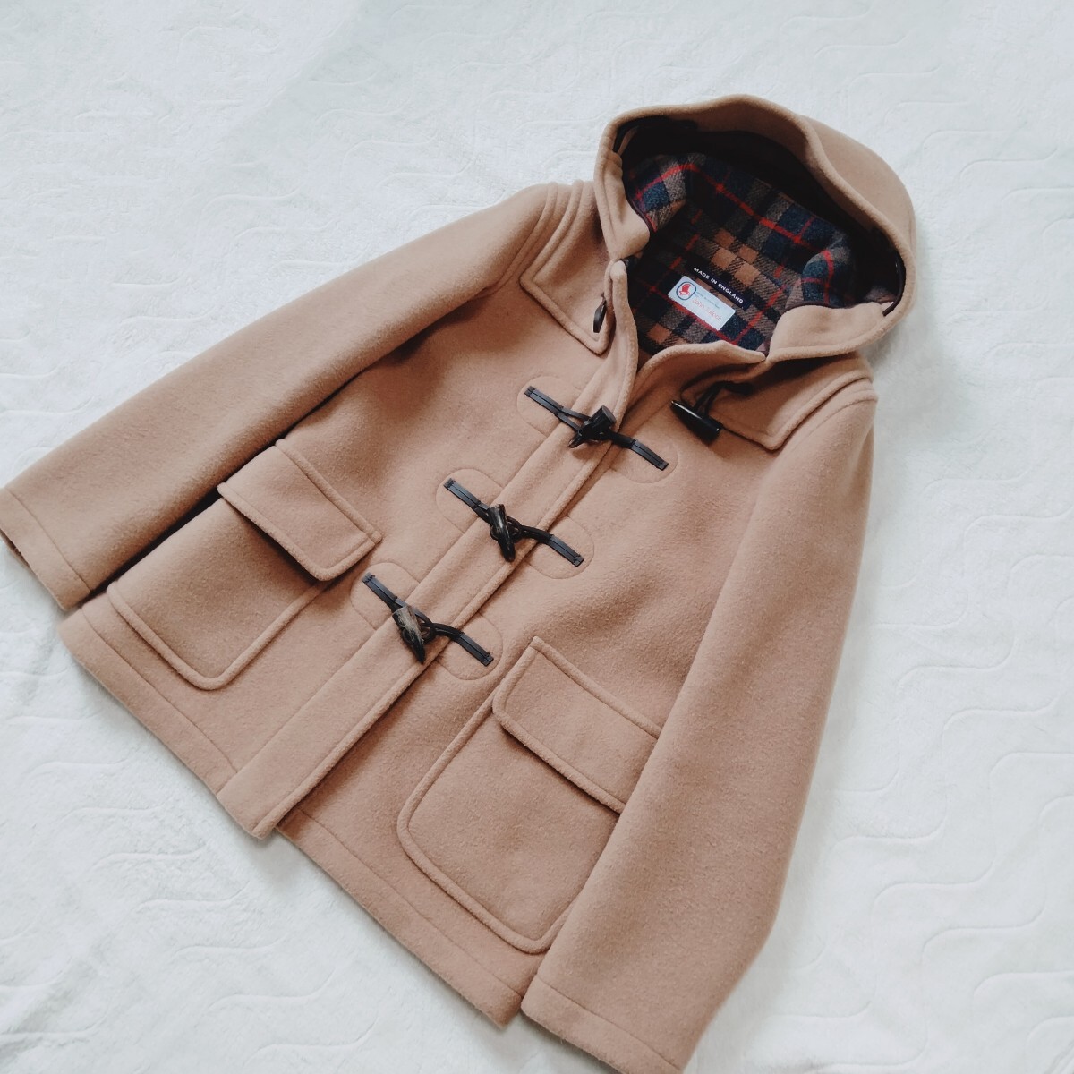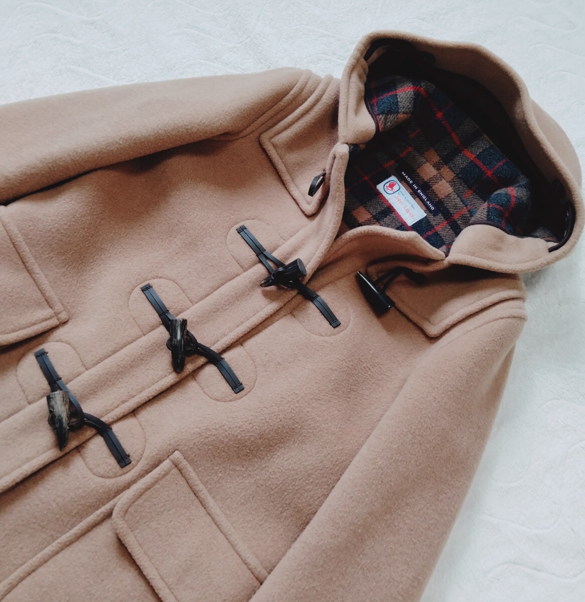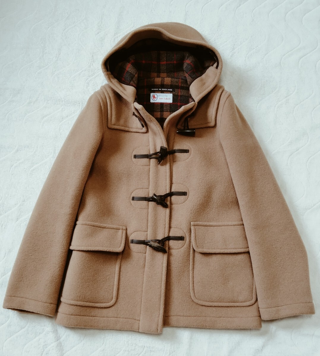 未使用*英国製*JOHN TULLOCH ジョンタロック*ダッフルコート*裏チェック柄*水牛トグル*キャメル*フレームワークス*茶系*ショート丈*36(M)