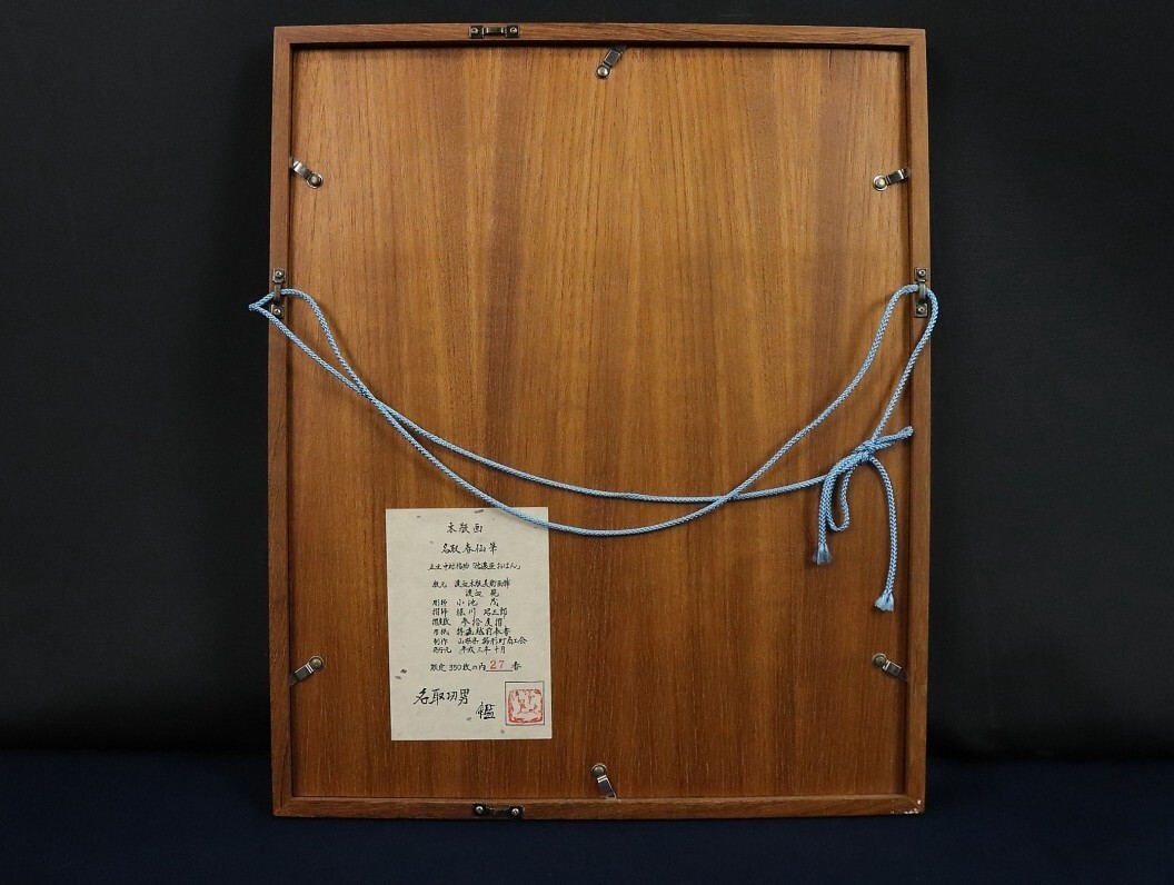 【状態】:本紙にシミあり。額裏面に鑑定シールあります。ガラス板です。