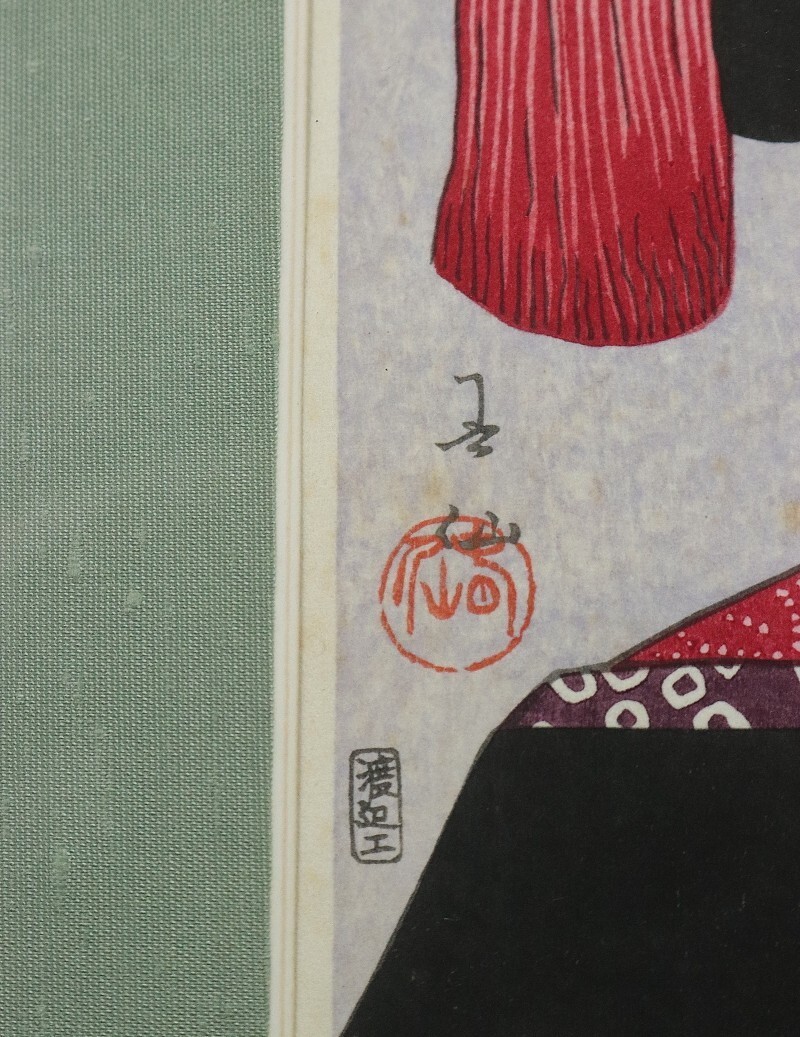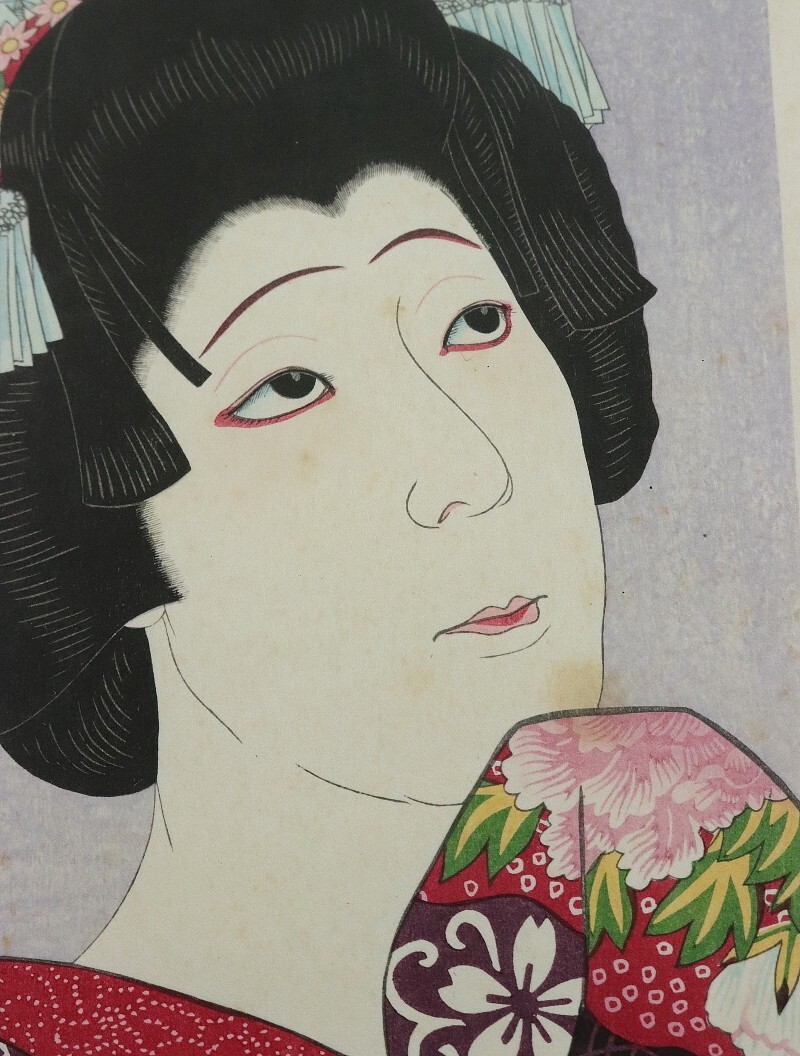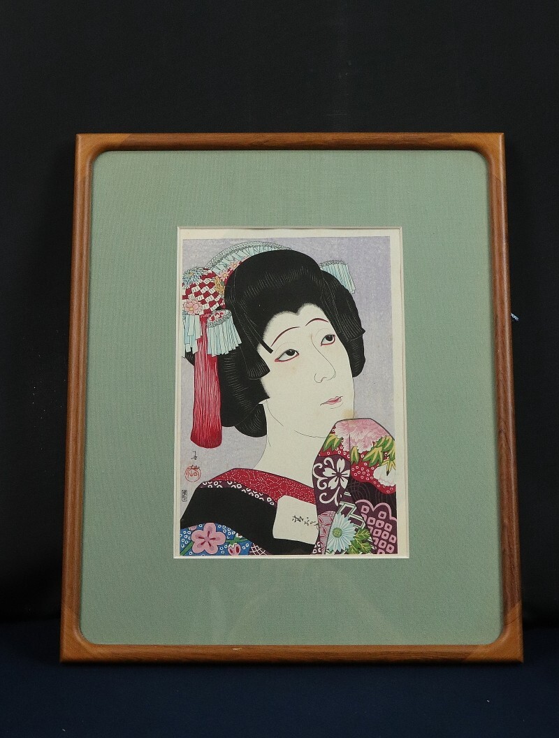 11136■【真作】名取春仙 五世中村福助 「信農屋 おはん」 木版 鑑定シール 限定350部 久保田米僊師事 山梨の人 額装