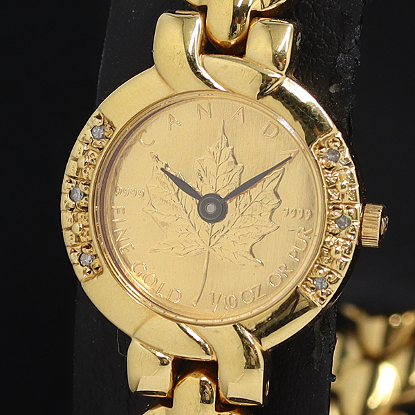 1円 カナダ メープルリーフ ファインゴールド 999.9 HQ-9513 QZ ゴールド文字盤 レディース腕時計 1927000 10NGB SMZ