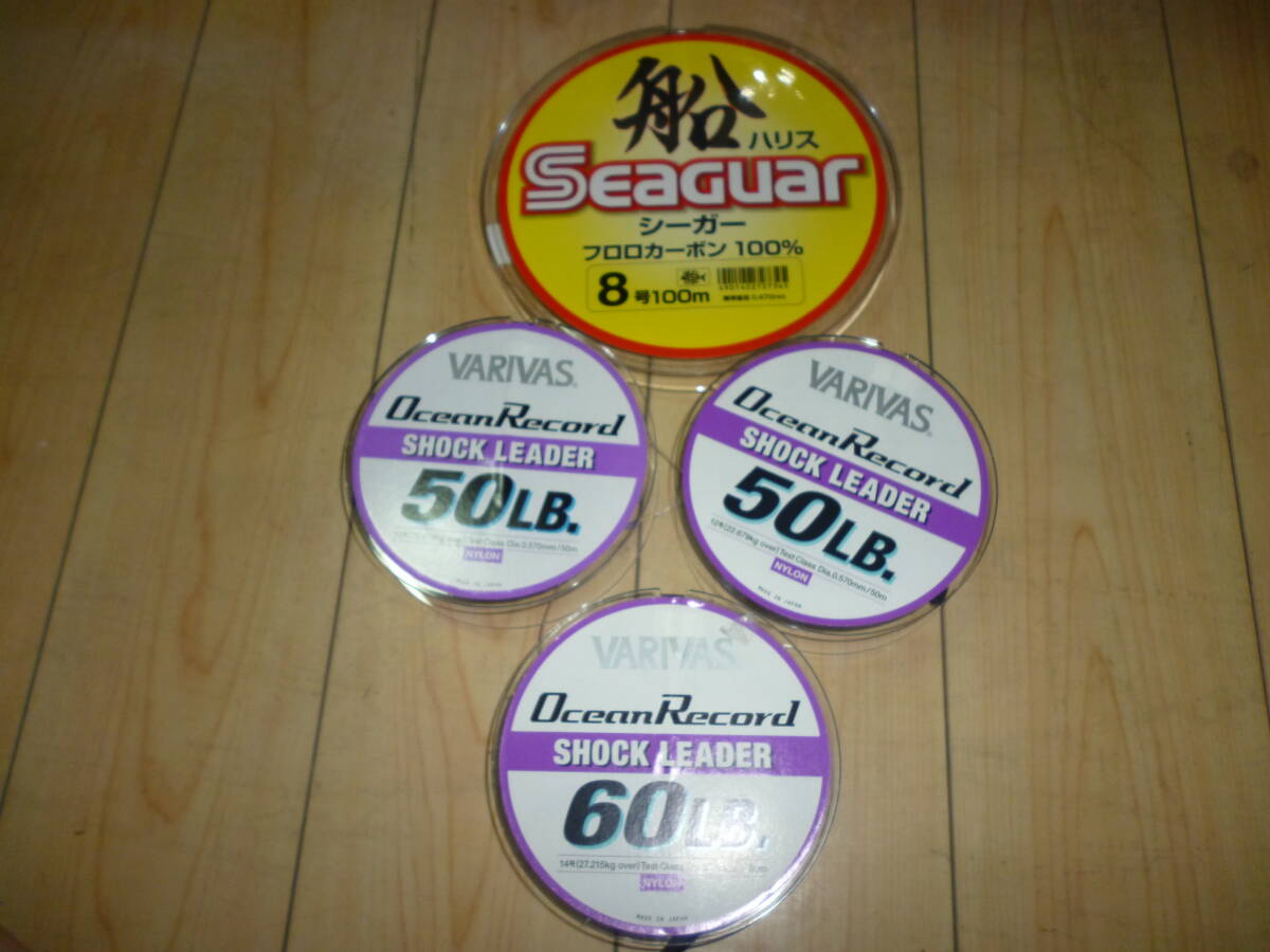 タチウオ仕掛け、青いのから逆テーパー仕掛け食い渋り用です(フロロカーボン8号が逆テーパー12号と14号)