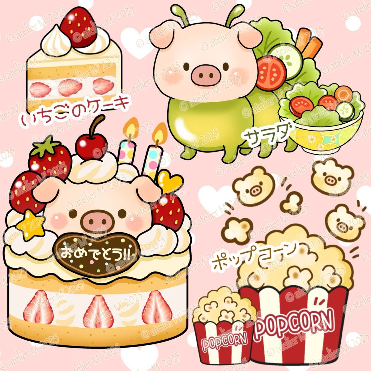 にんじん・ポップコーン・ドーナツ・ケーキ…