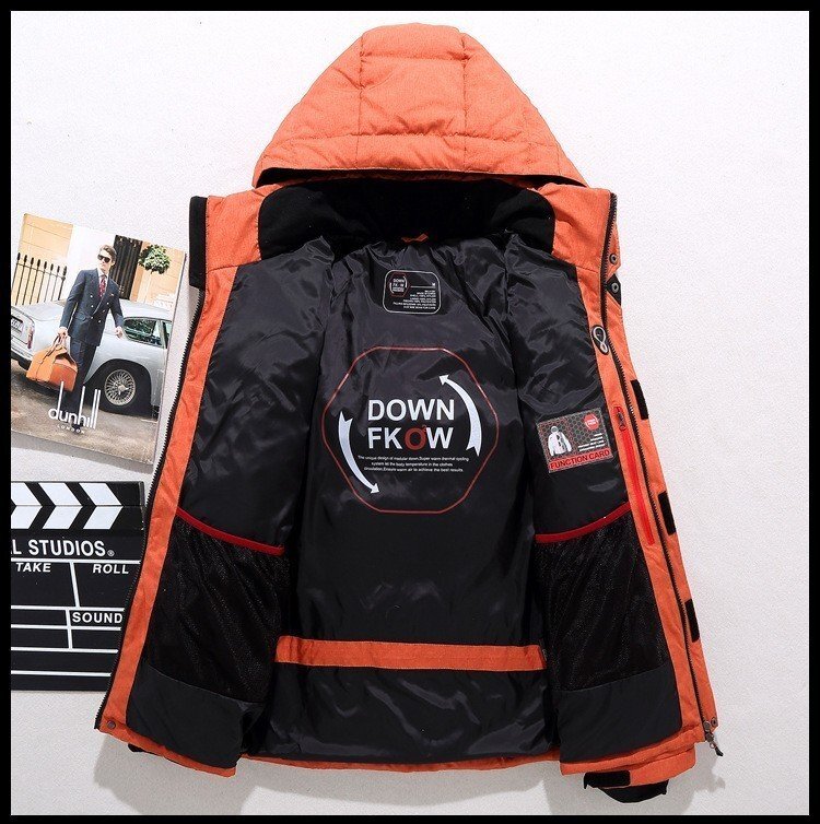 ダウンジャケット メンズ アウトドア 暖かい 無地 フード付き ハイネック 撥水 ボリュームネック 防寒 秋冬 アメカジ 保温