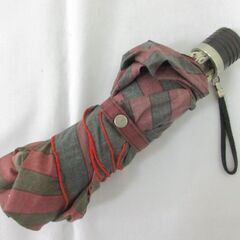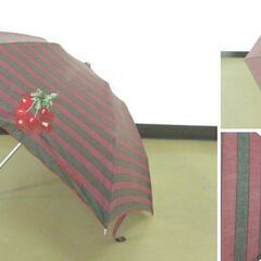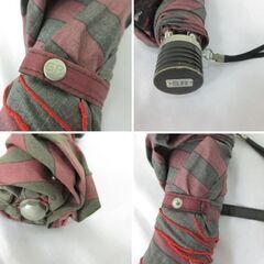 ジ (せ-A1-8137) SONIA RYKIEL ソニアリキエル 折りたたみ傘 雨傘 手開き式 ブラック 黒 赤紫 ボーダー 全長約23cm 半径約46cm 中古
