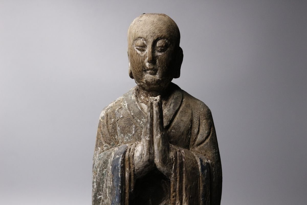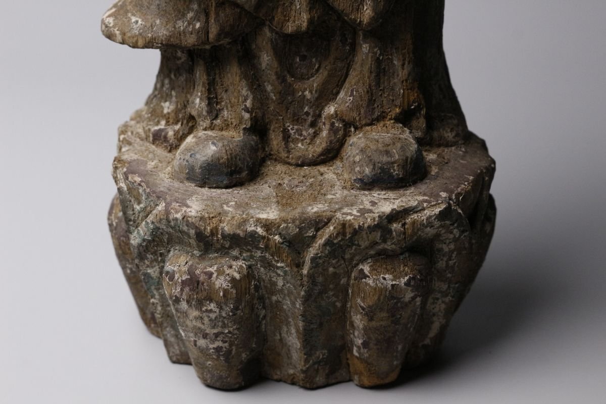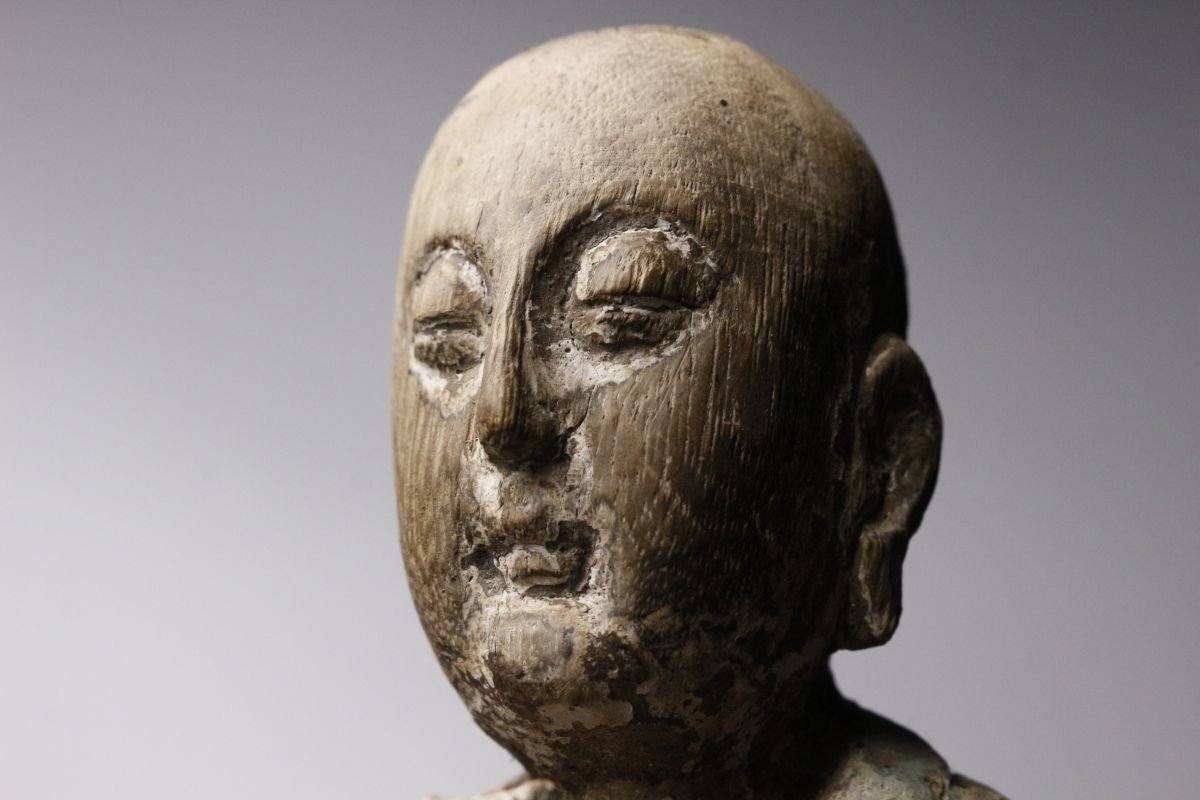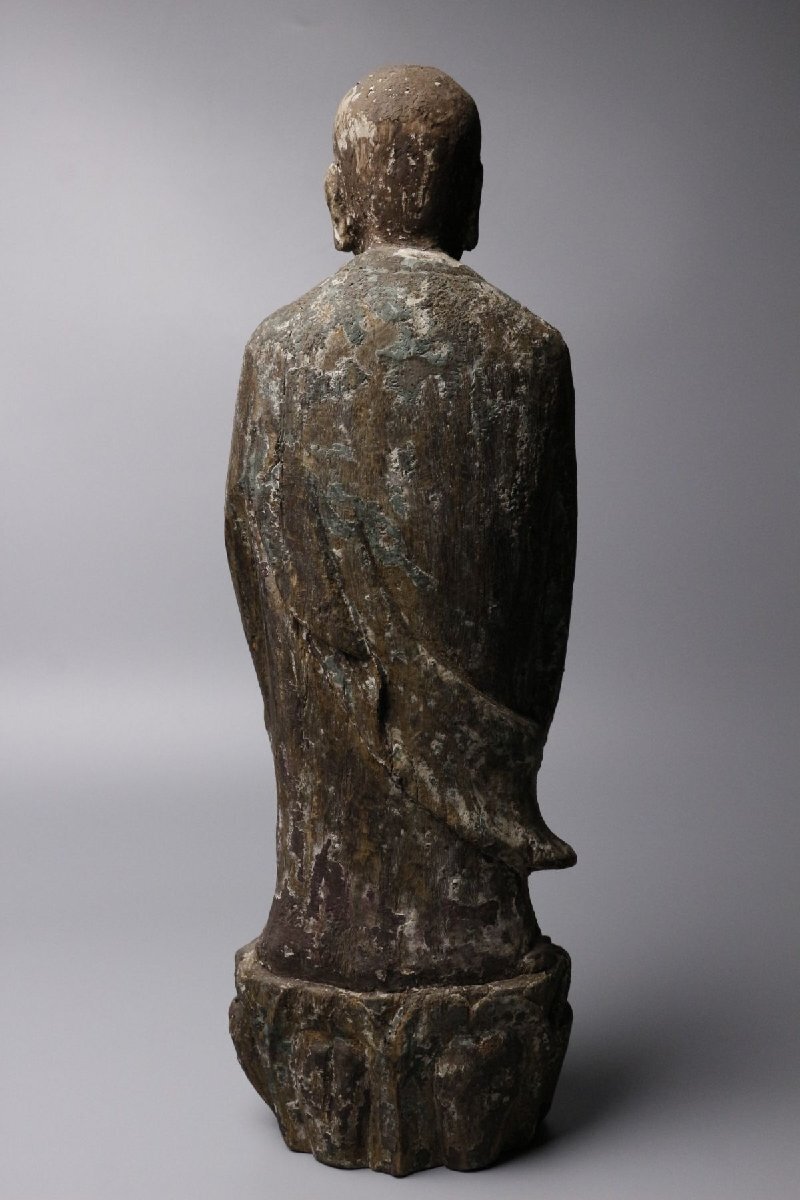 * * * 商品詳細 * * * ここでしか出逢うことのできない唯一の美をご紹介させて頂きます。 悠久の年月を感じさせる木の地肌が味わい深い 木彫 善導大師立像のご紹介です。 善導大師は中国唐代初期に活躍した、中国浄土教(浄土宗)の基礎を確立した人物で、 日本の法然上人にも絶大な影響を与え、浄土宗では「浄土五祖」の第三祖とされています 目を閉じながら大きな手を高い位置で合わせて拝む様子は 神秘的であり信仰心の表れのようでもある神々しいお姿をしています。 風格感じる木肌は経年を経ることによる変化を感じさせる時代の逸品です。 この機会に是非、お手元にてご堪能ください。 ■サイズ/横11.5㎝×高35㎝×奥行9㎝ ■状態/ スレ、傷、欠け、割れ、剥げ、腐食、経年による傷みがございます。 ※写真にてご確認、ご了承の上ご入札下さい。