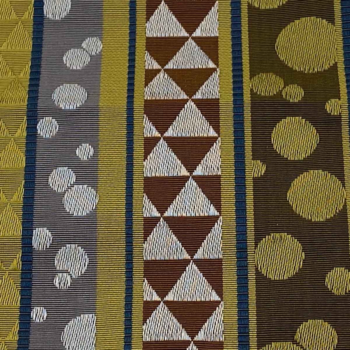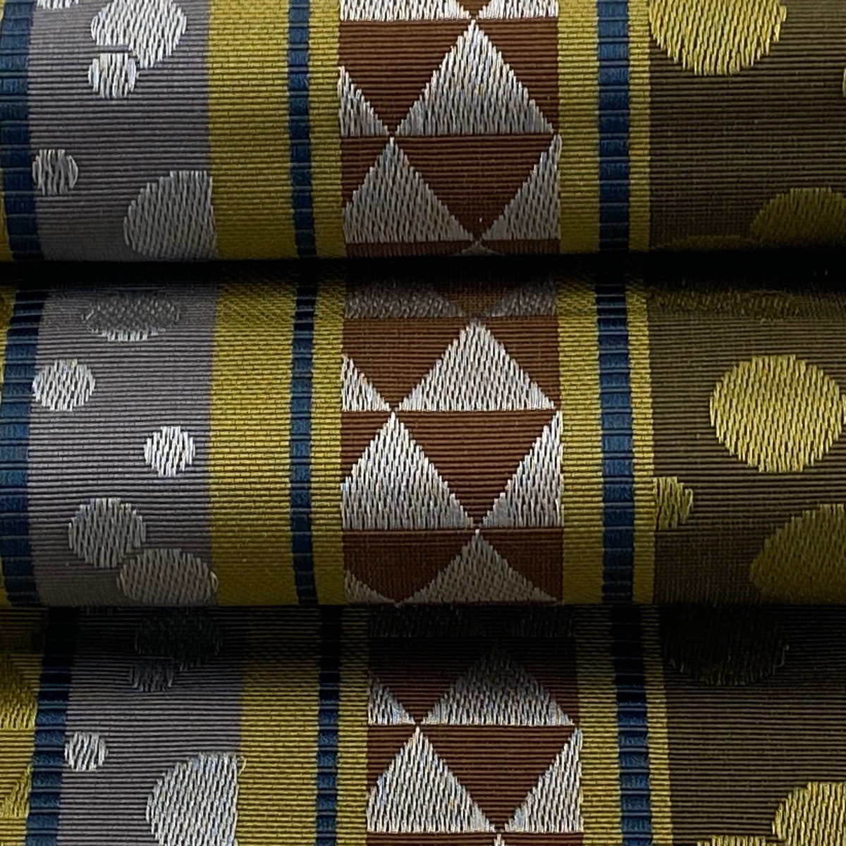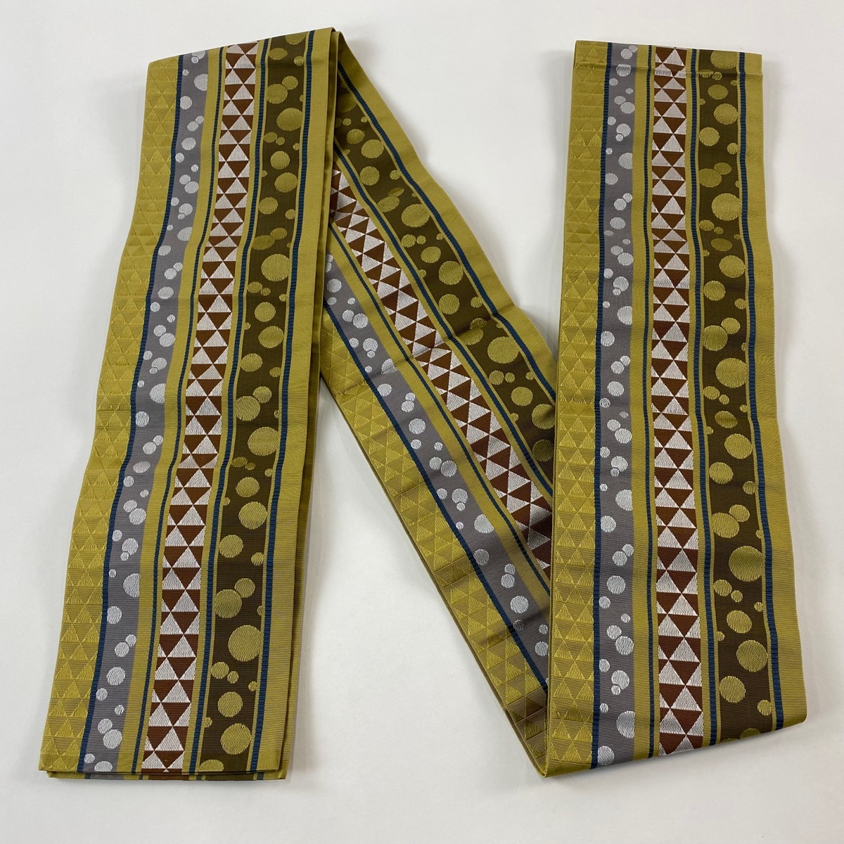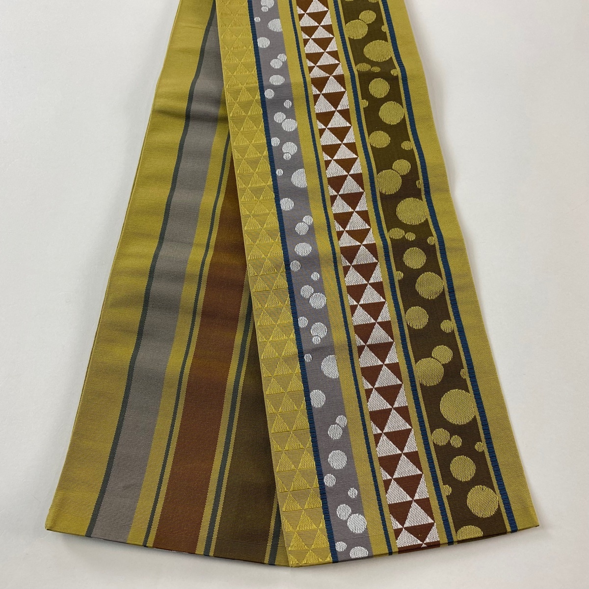 半幅帯 美品 秀品 証紙 本場筑前博多織 鱗 縞 鶯色 正絹 【中古】 |
