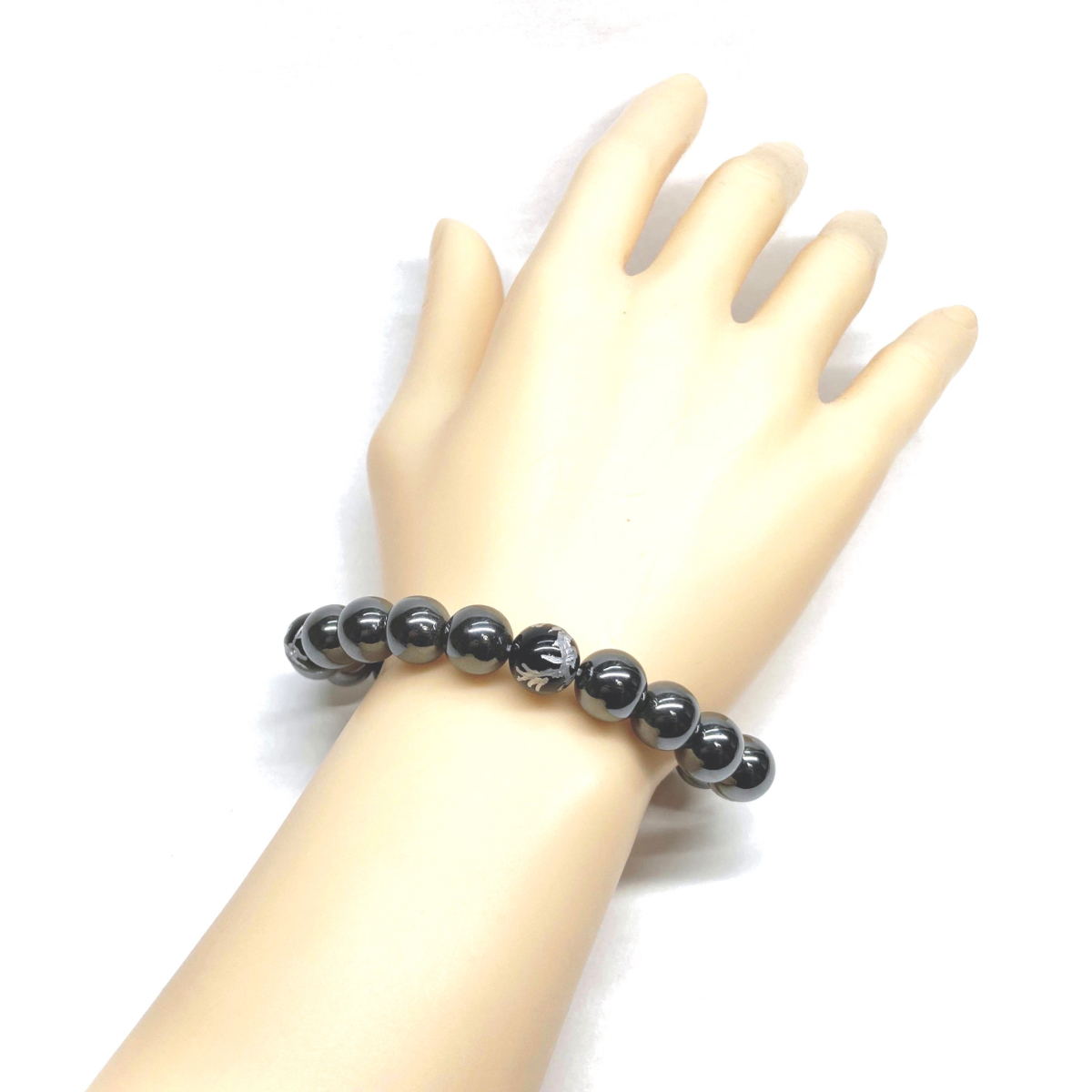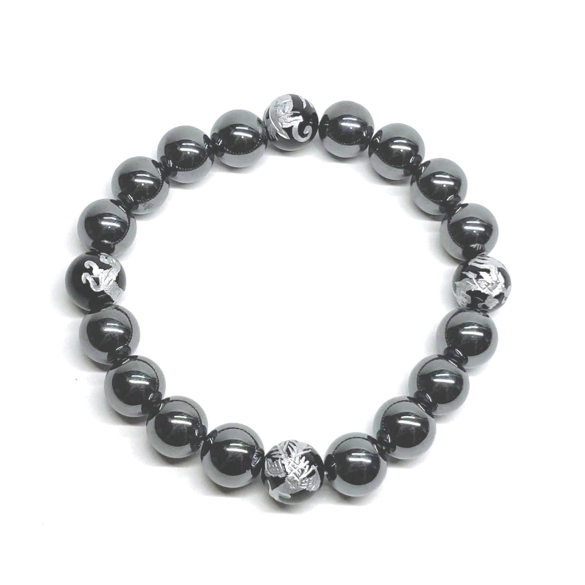 10mm 四神獣銀彫オニキス×ヘマタイト パワーストーン ブレスレット天然石 運気上昇 開運 金運 恋愛運 青龍 白虎 玄武 朱雀 ☆