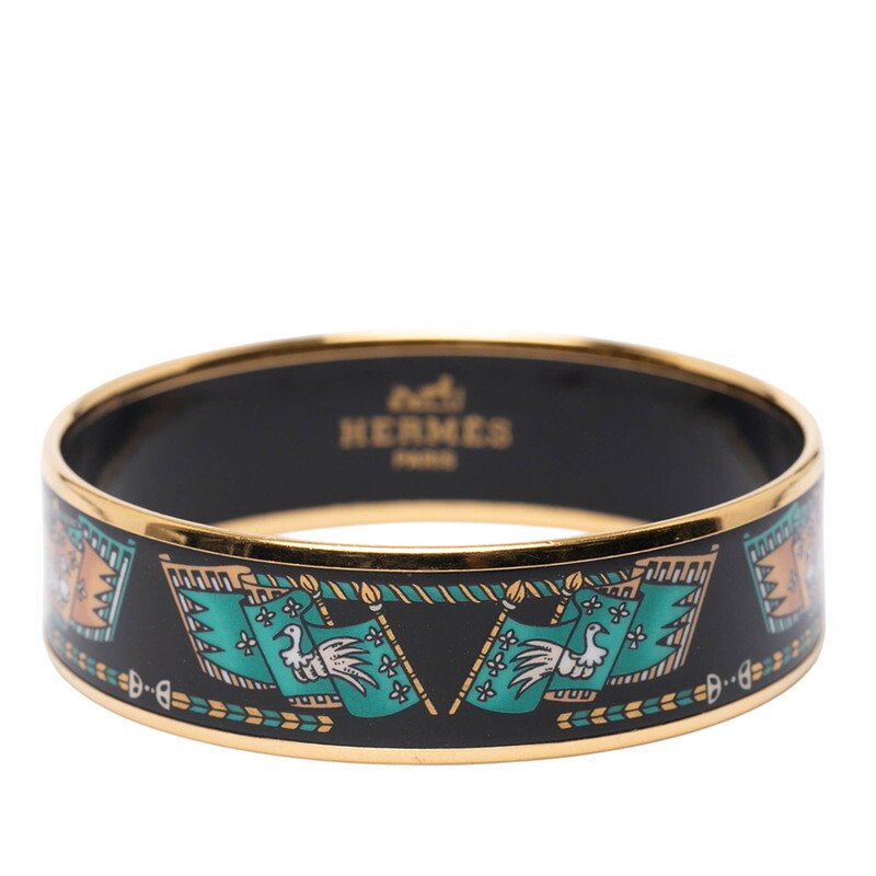 エルメス エマイユ 鳥 旗 モチーフ バングル ゴールド ブラック マルチカラー メッキ レディース HERMES 【中古】