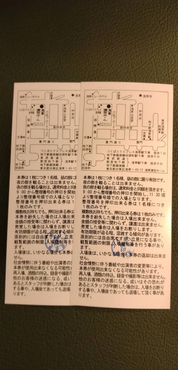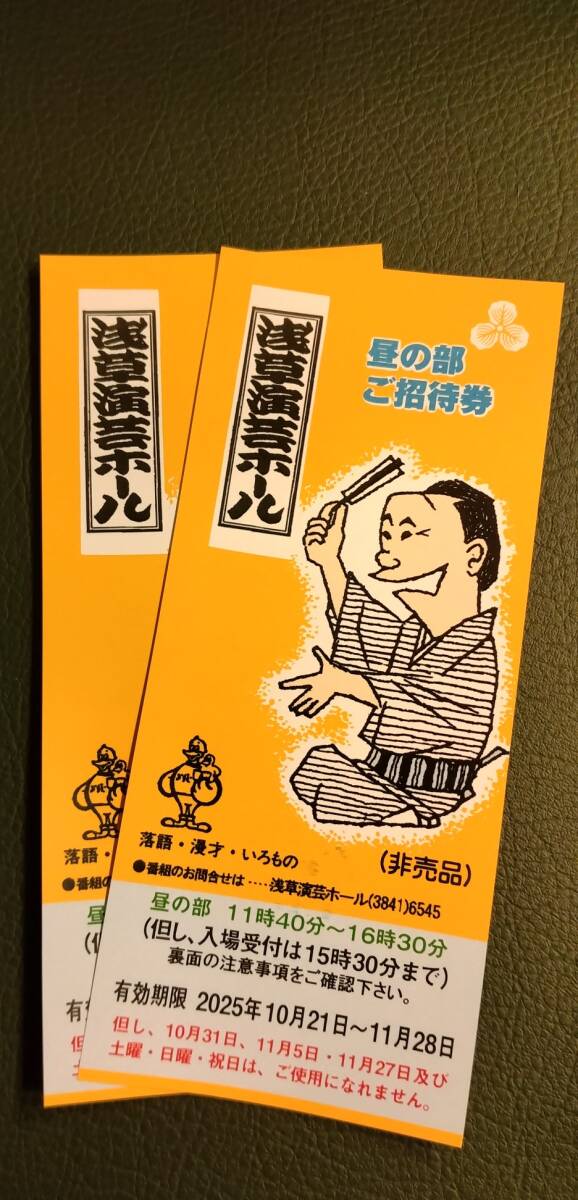 浅草演芸ホール 昼の部●ご招待券ペア●2枚 10/21~11/28