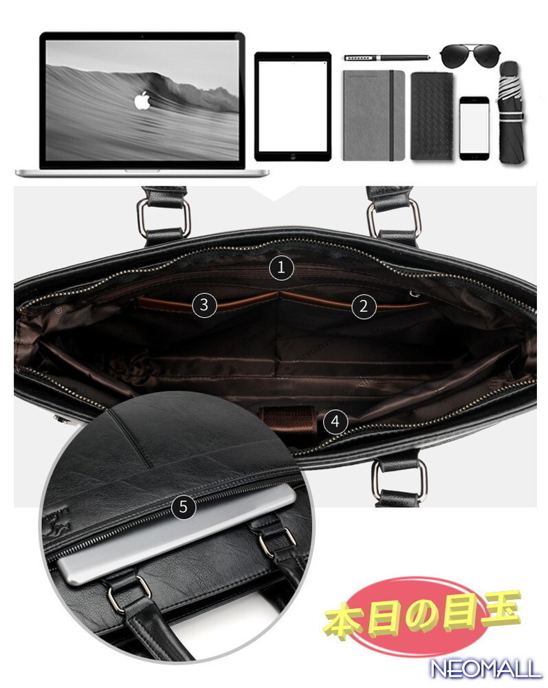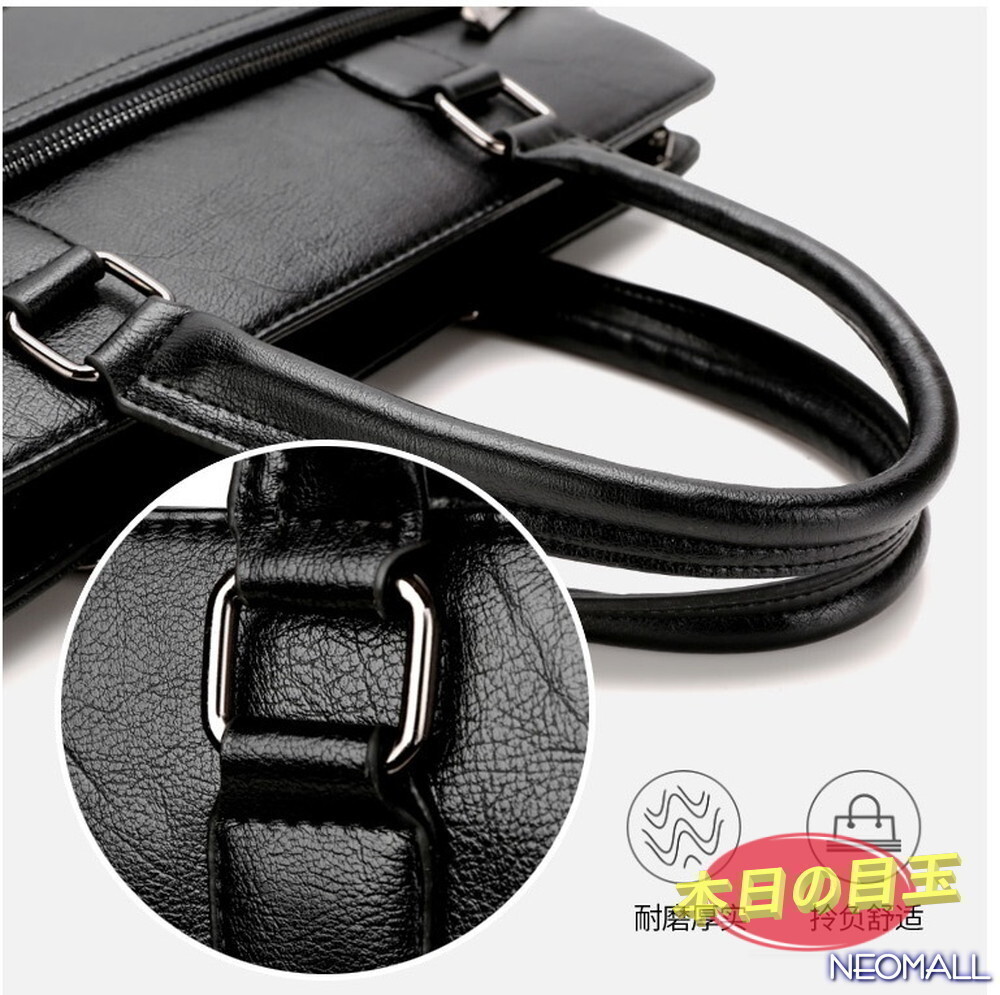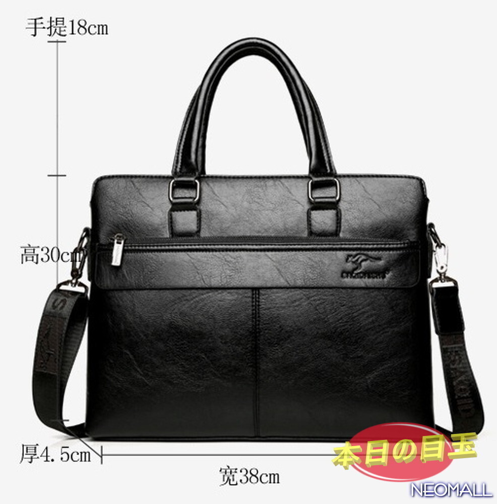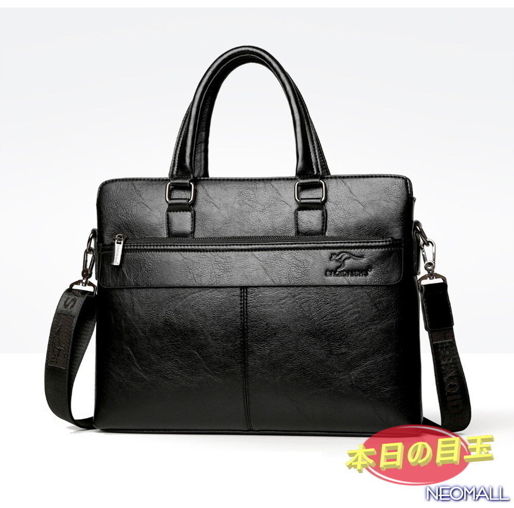 1円~ 新品 メンズ 高級PUレザー ビジネスバッグ【575】ブラック ブリーフケース ショルダー スクエア 横型 大人気 上質 質感◎ 未使用