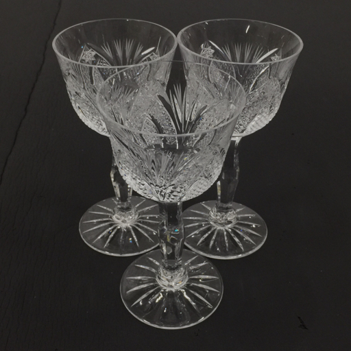| メーカー不明 カットデザイン ワイングラス 口径7cm 高さ約13.7cm 食器 テーブルウェア 計3点 セット 現状品 |